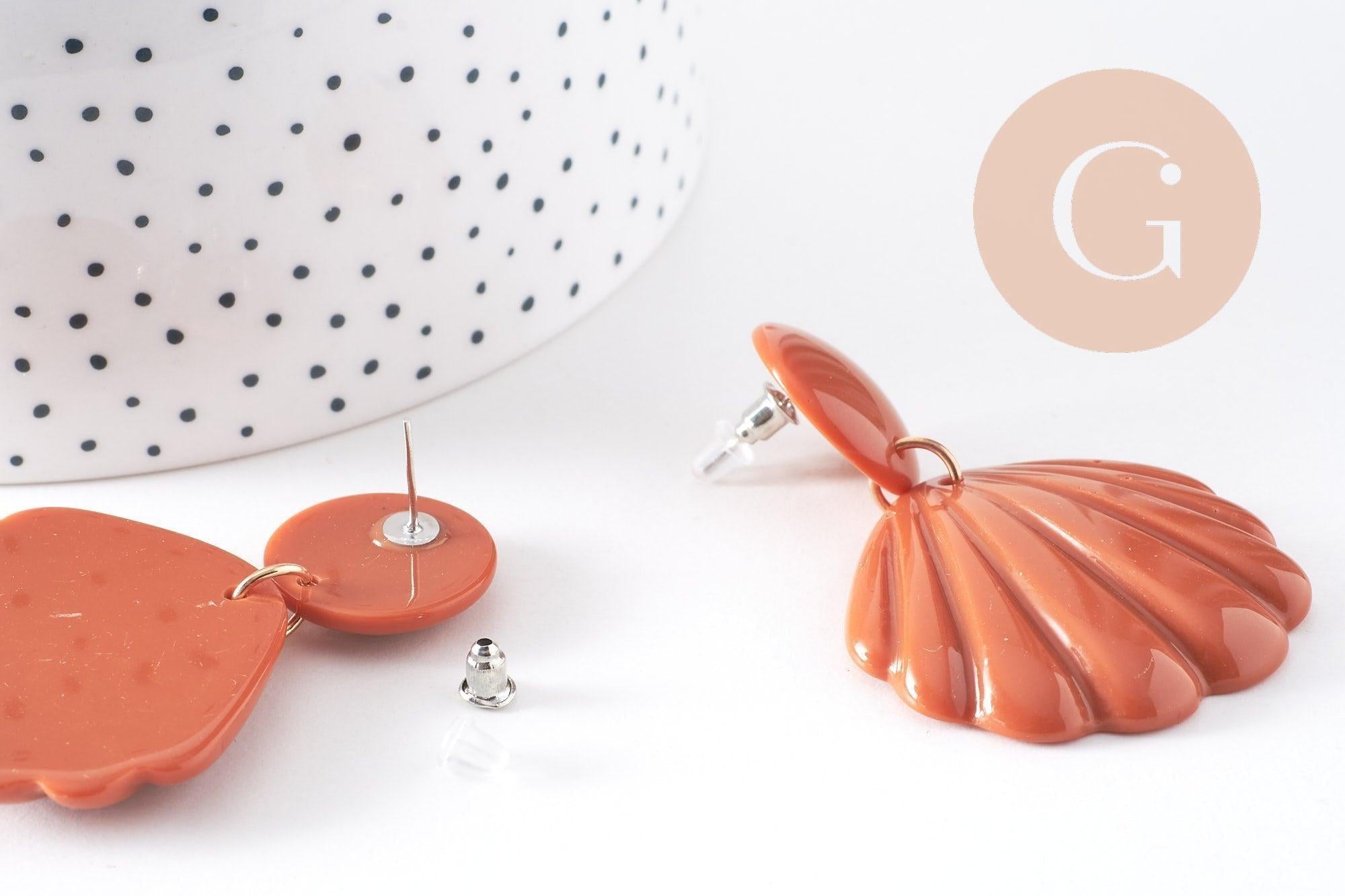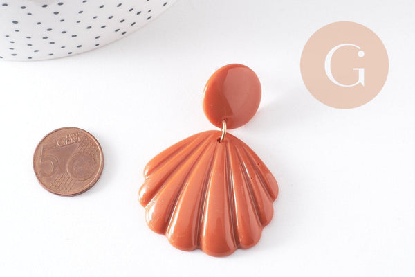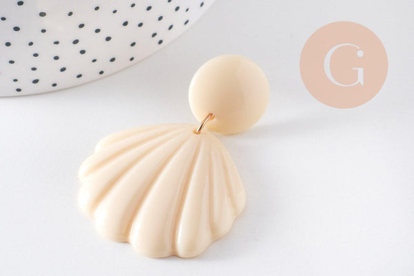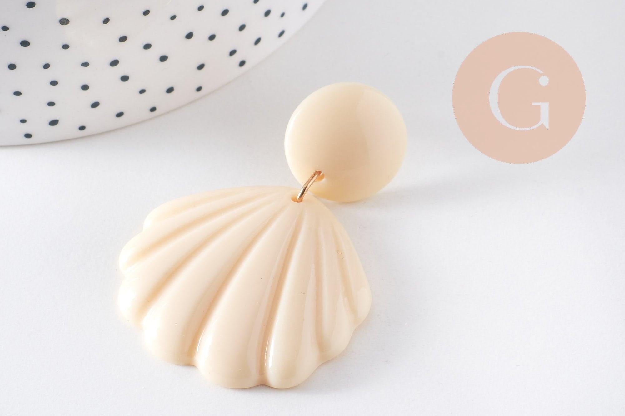 Pendientes de concha de resina de colores, acero inoxidable 316, chapados en oro, 59 mm, par (G10354)