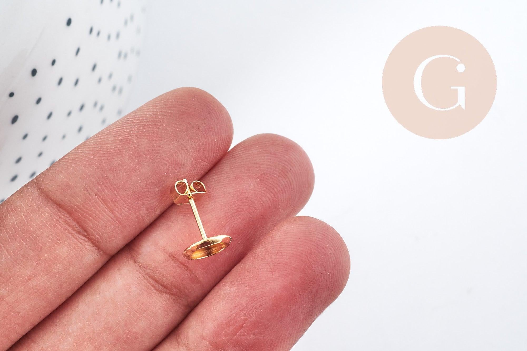 Boucles puce support cabochon rond 6mm laiton doré 16K, la paire (G8922)