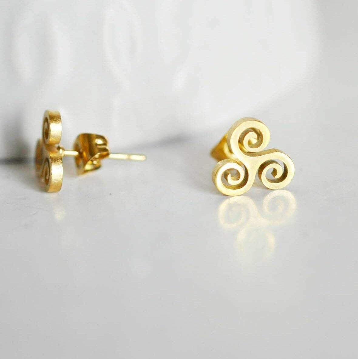 Pendientes de acero dorado con triskel, joyas de oro, suministros creativos, creación de joyas, triskel, sin níquel, par, pendientes de acero, 9 mm Pendientes de acero bañados en oro en forma de triskel, emblema de Bretaña. Se vende en pares...
