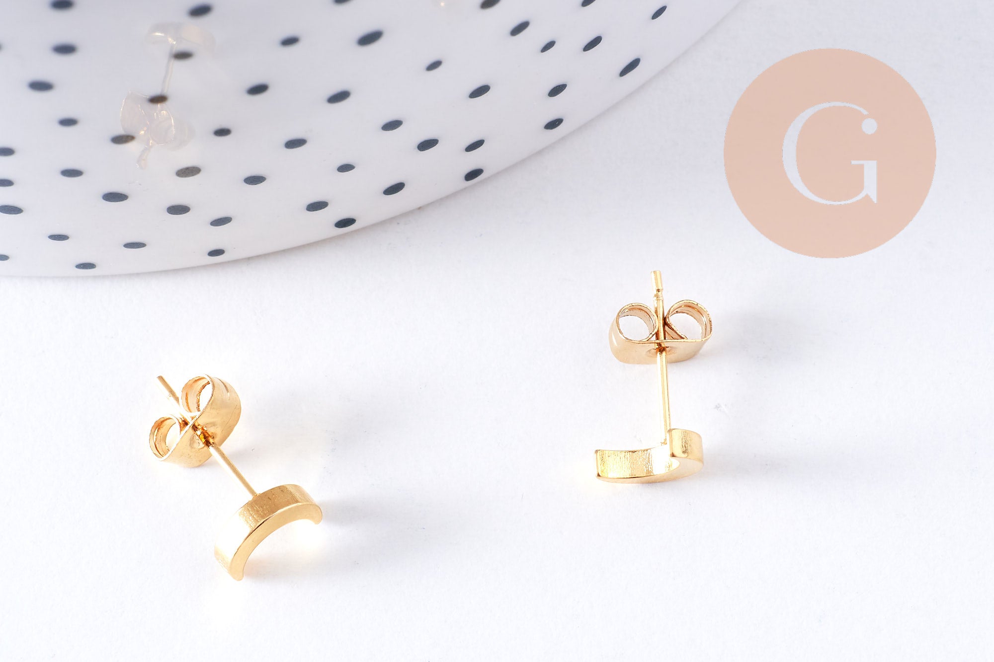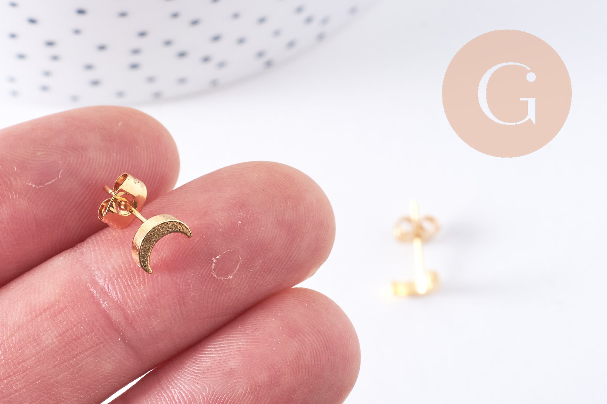 Boucles puces lune en acier doré 304 inoxydable 7x5x2mm, la paire(G2991)