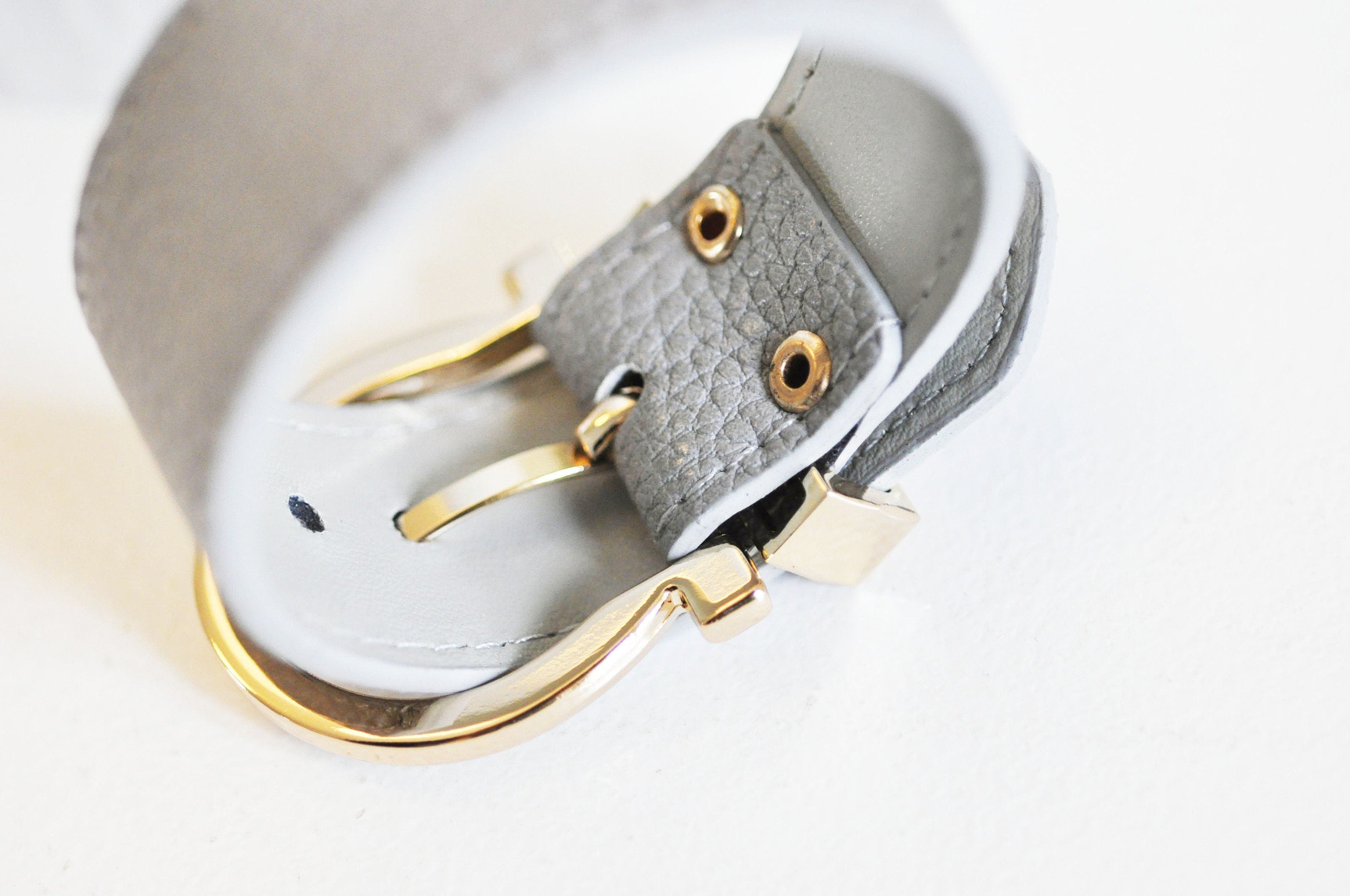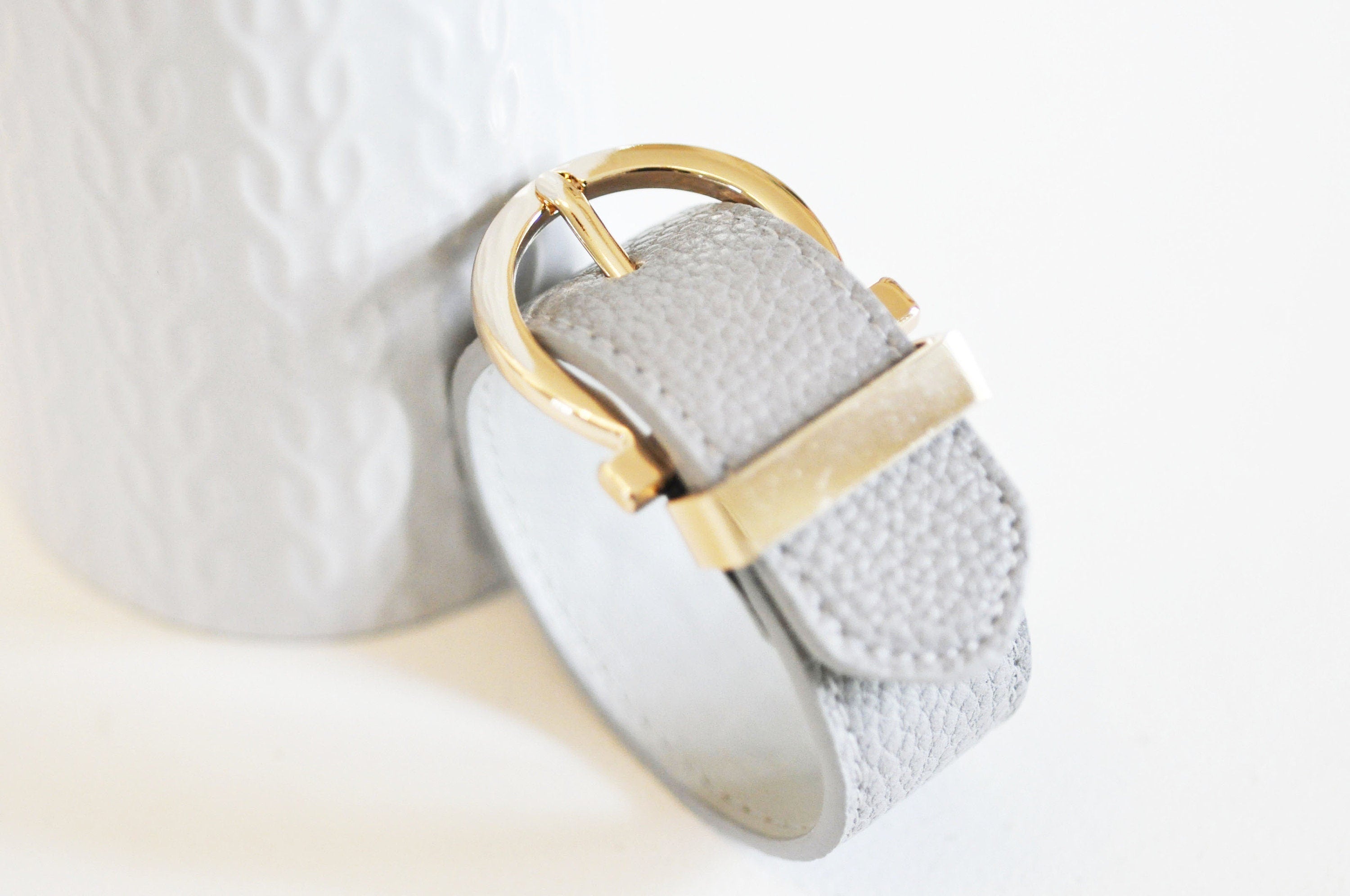 Pulsera ajustable de cuero gris con hebilla dorada, cuero natural, pulsera de mujer, pulsera de cuero, fabricación de joyas, pulsera dorada, 25.5mm