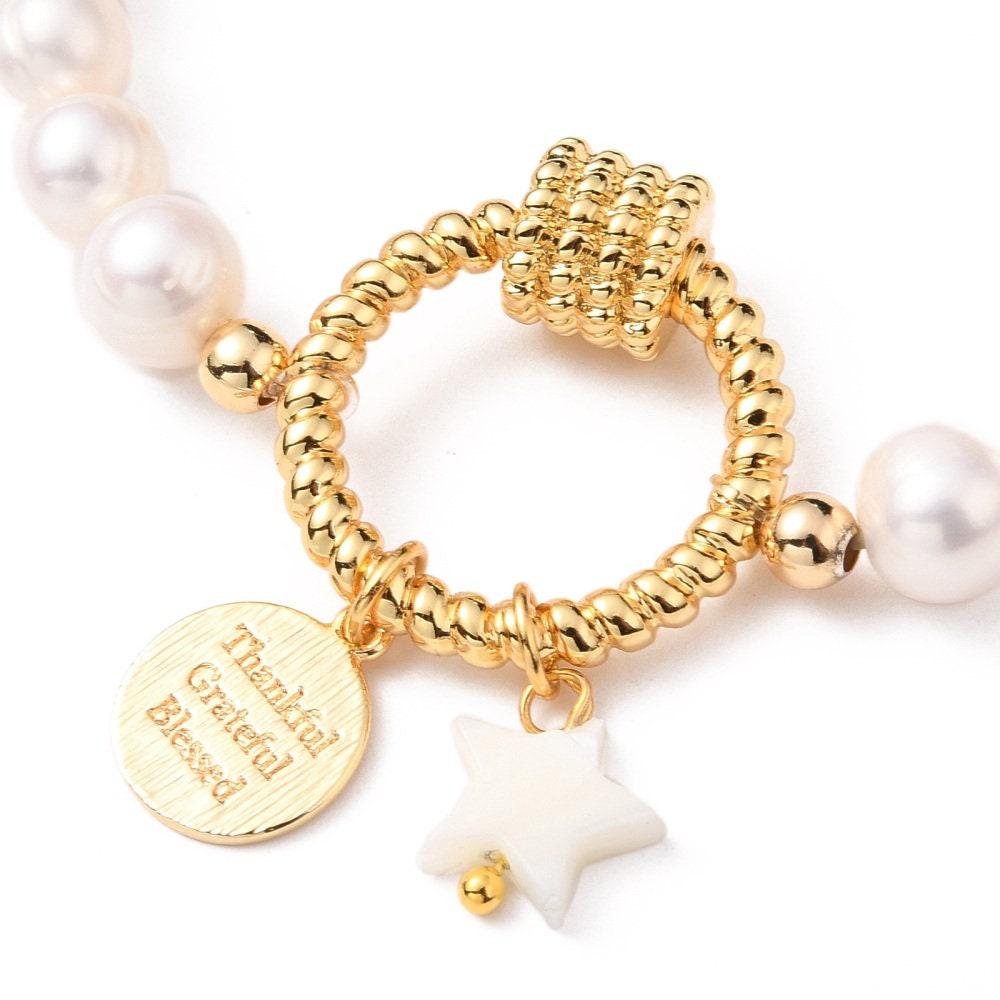 Pulsera elástica Perlas naturales latón bañado en oro joyería bañada en oro, regalo de cumpleaños, sin níquel, pulsera de dijes, 50 mm Una preciosa pulsera de latón dorado y perlas naturales de agua dulce, elástica, decorada con un círculo retorcido...