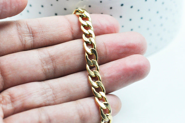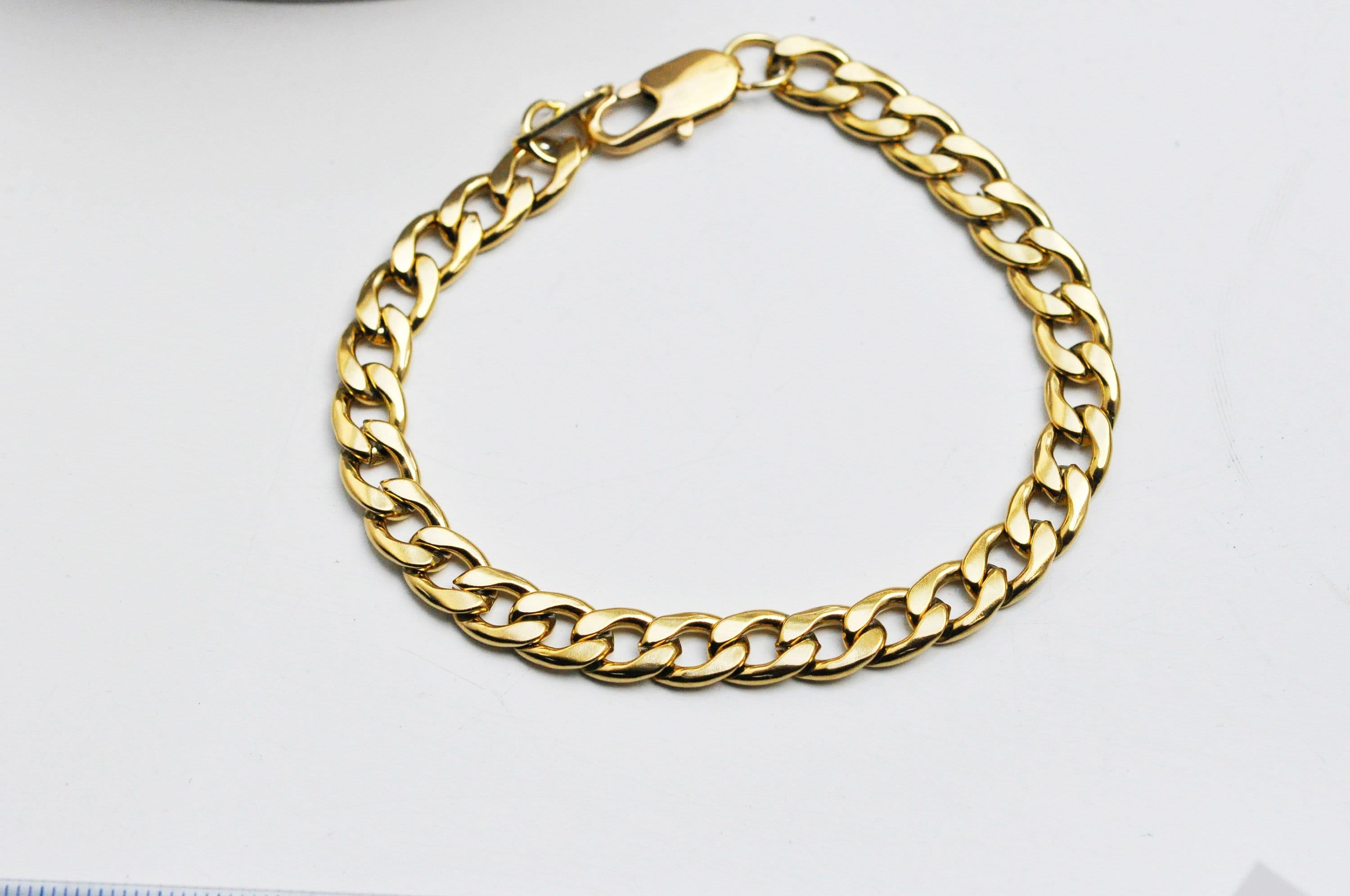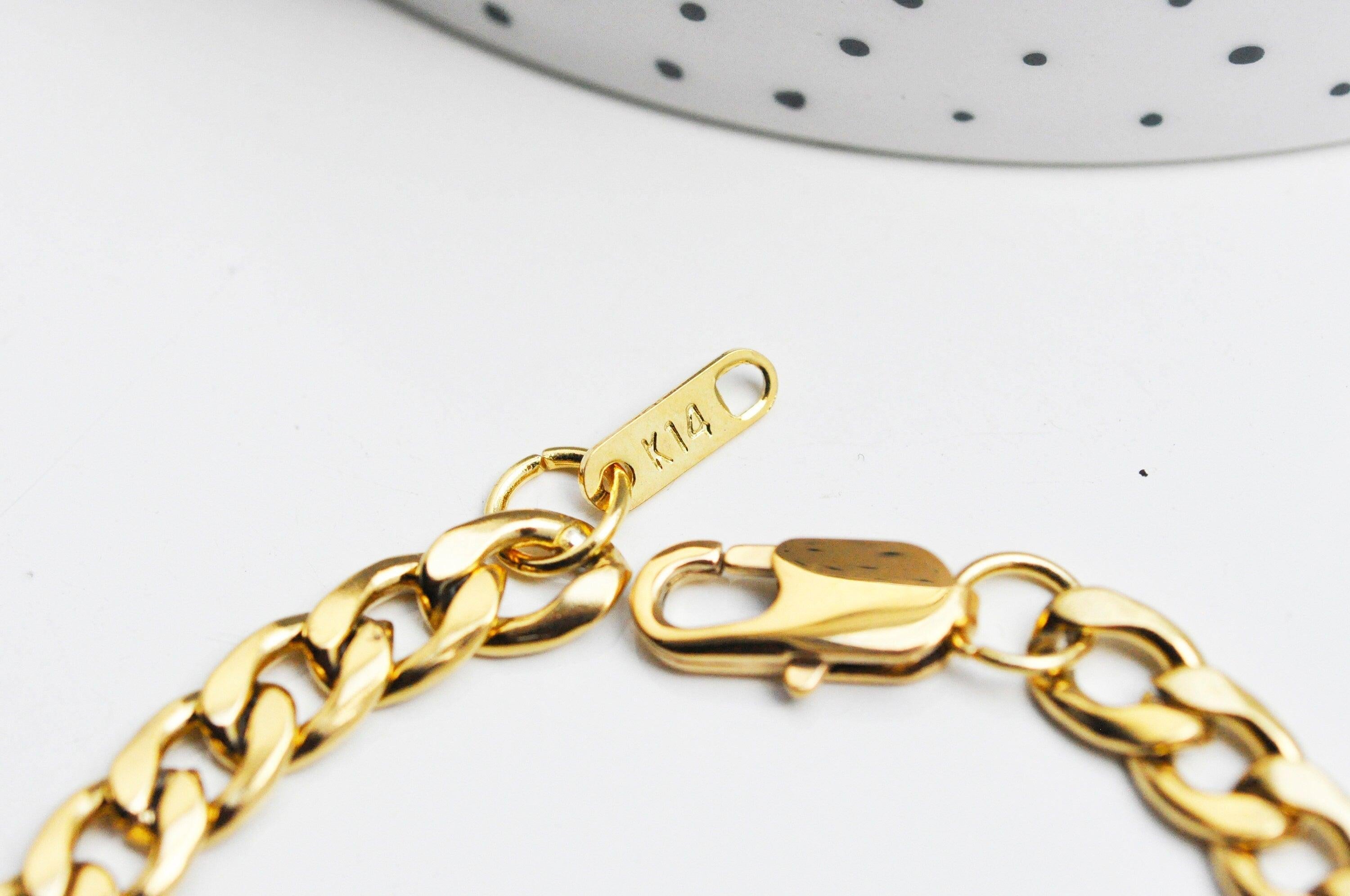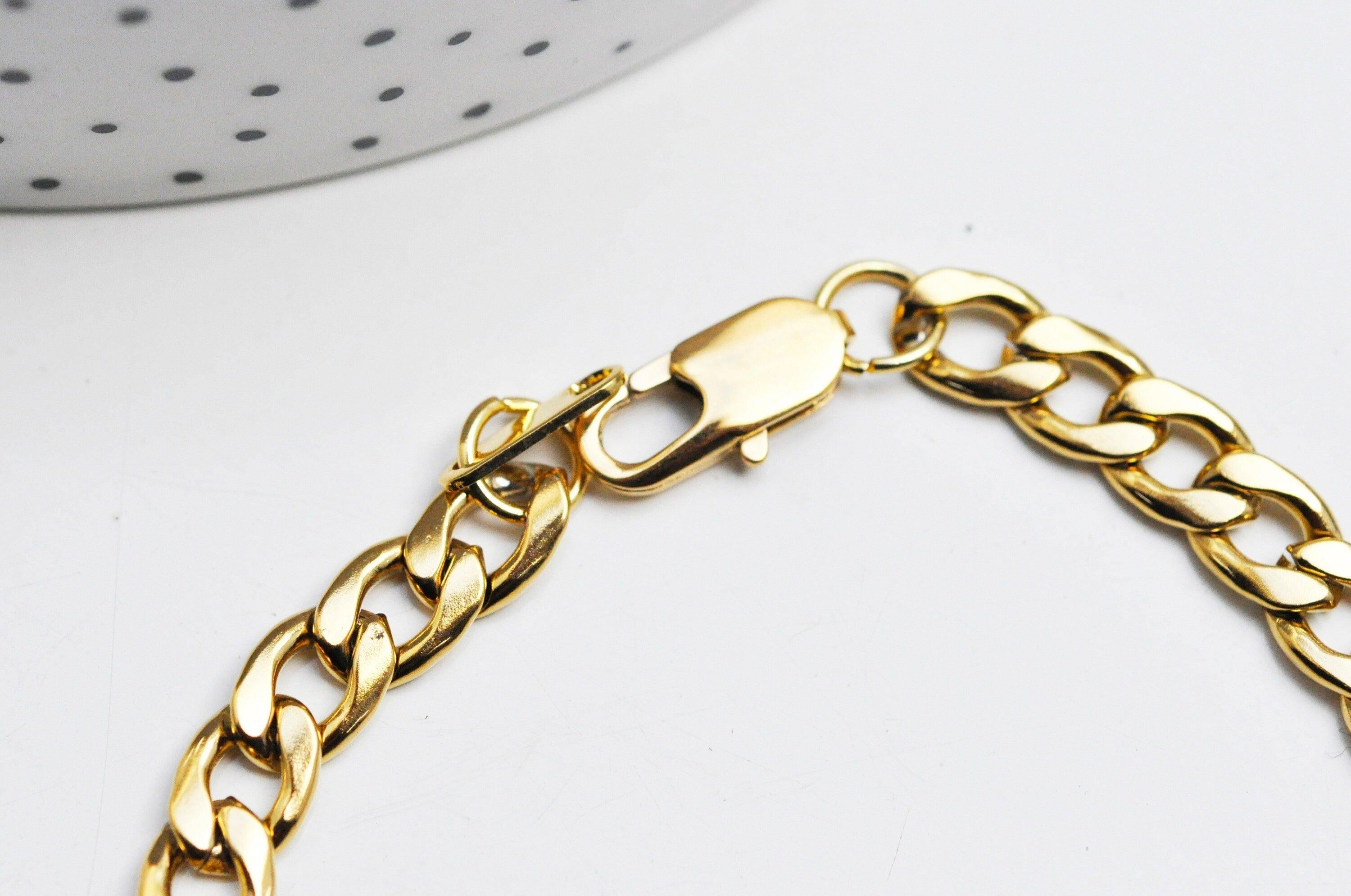 Pulsera grande de malla figaro, acero bañado en oro de 14k, creación de joyas, pulsera de acero inoxidable bañada en oro, sin níquel, 20cm