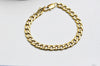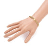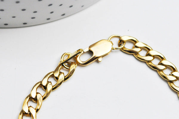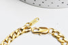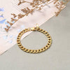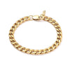 Pulsera unisex en acero bañado en oro de 14k, elaborada con malla grande de acero inoxidable bañada en oro, rematada con cierre de mosquetón y pequeña medalla.
