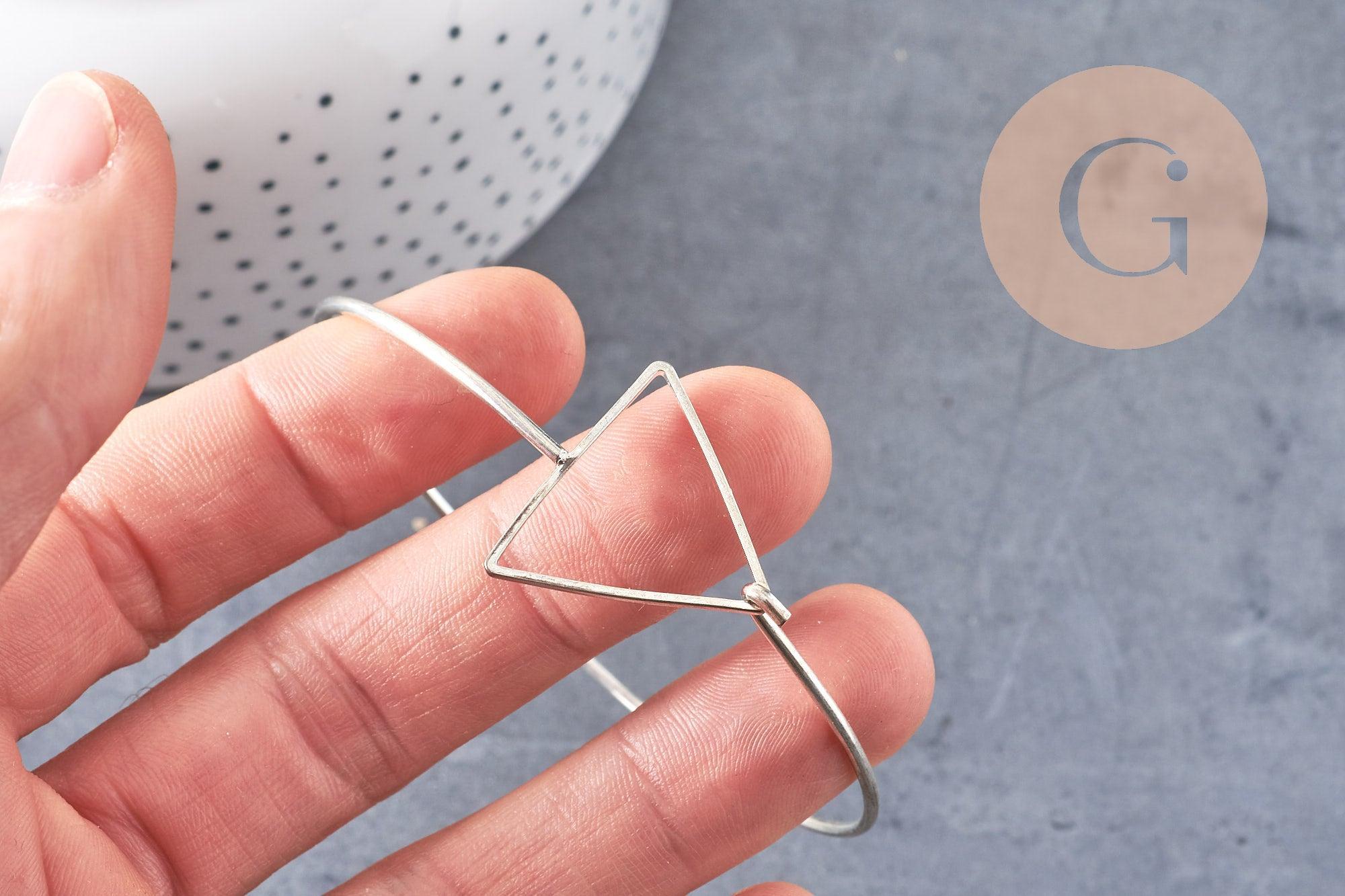 Pulsera de triángulo de plata ajustable, suministros para manualidades, latón plateado, pulsera de latón, fabricación de joyas, pulsera de plata, 60 mm