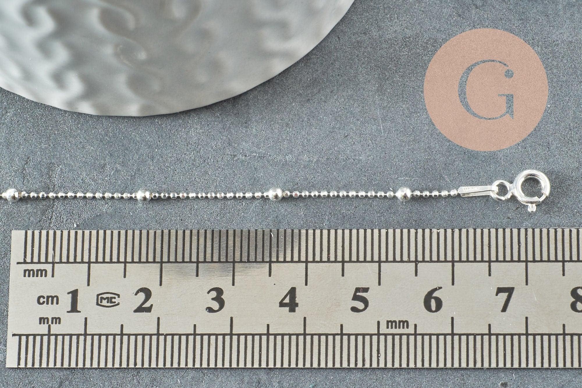 Pulsera de malla de bolas finas en plata maciza 925 17,7 cm, cadena de plata para creación de joyas, x1 G9431