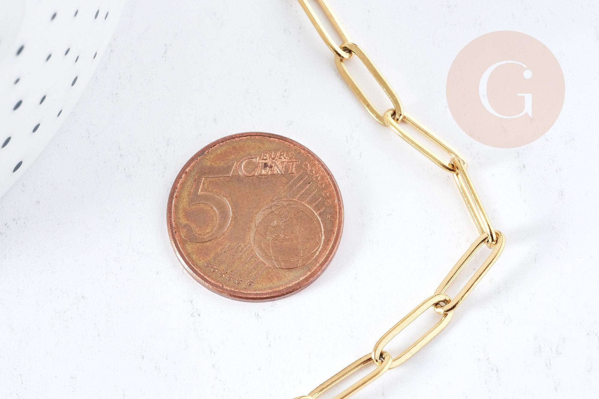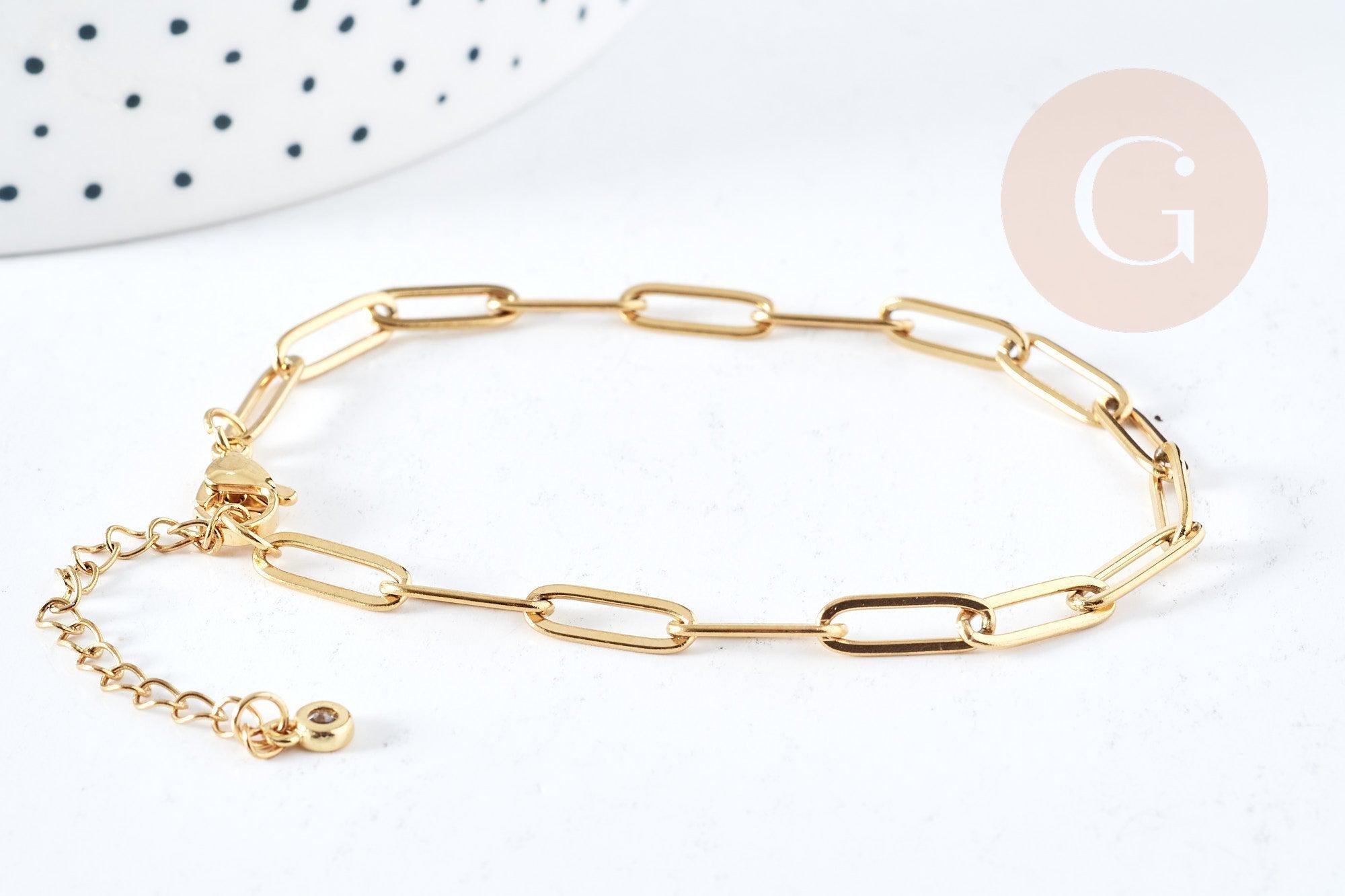 La pulsera rectangular de eslabones tipo clip, elaborada en acero inoxidable 304 chapado en oro de 14k, es una pieza elegante y moderna, ideal para complementar cualquier atuendo. Sus eslabones alargados le dan un toque sofisticado y actual a la muñeca, ya sea que se use sola o combinada con otras pulseras. Robusta, cómoda y atemporal, es perfecta tanto para el día a día como para ocasiones especiales.