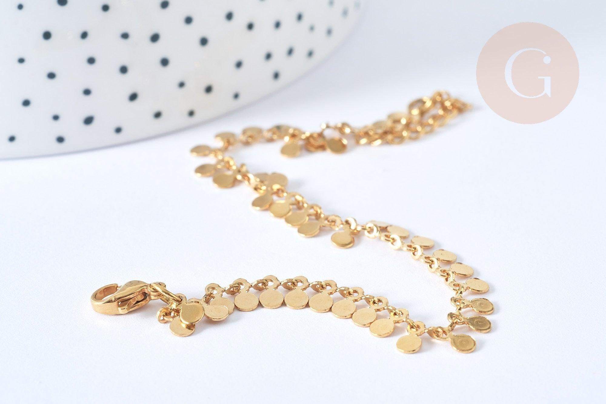 Adopta esta pulsera femenina en acero inoxidable dorado 304 , compuesta por pequeñas bolitas redondas rematadas con un cierre de mosquetón .