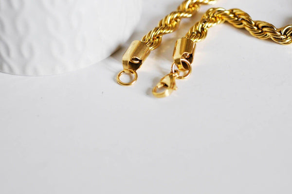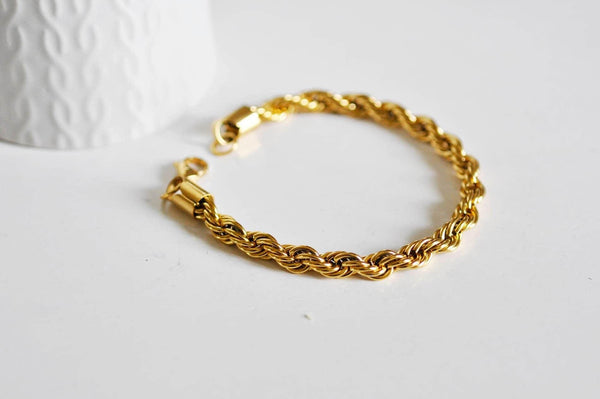 Pulsera trenzada de acero bañado en oro de 14k, pulsera bañada en oro, creación de joyas, pulsera de acero quirúrgico, libre de níquel, pulsera de acero bañado en oro, 22cm-G1398