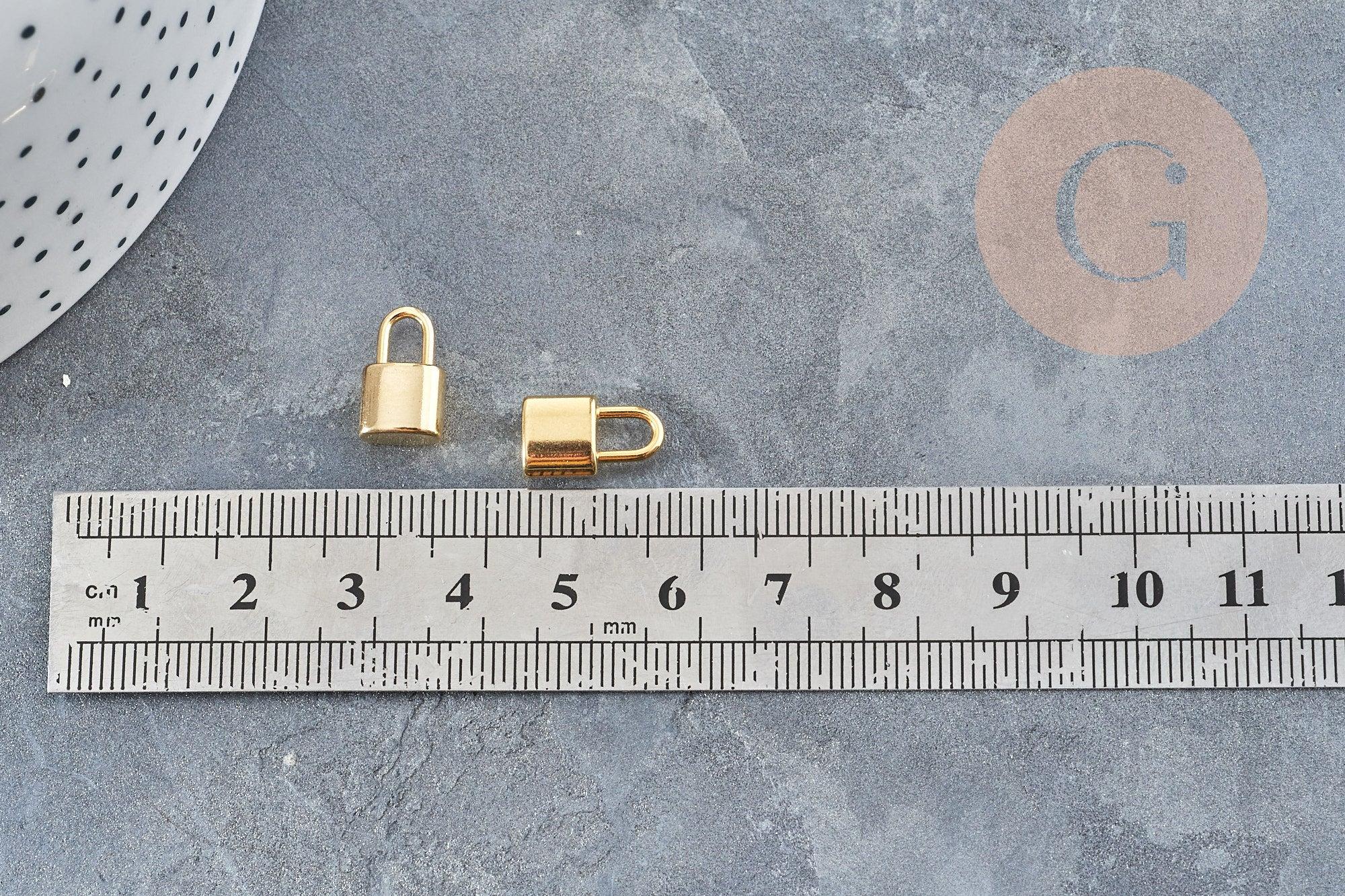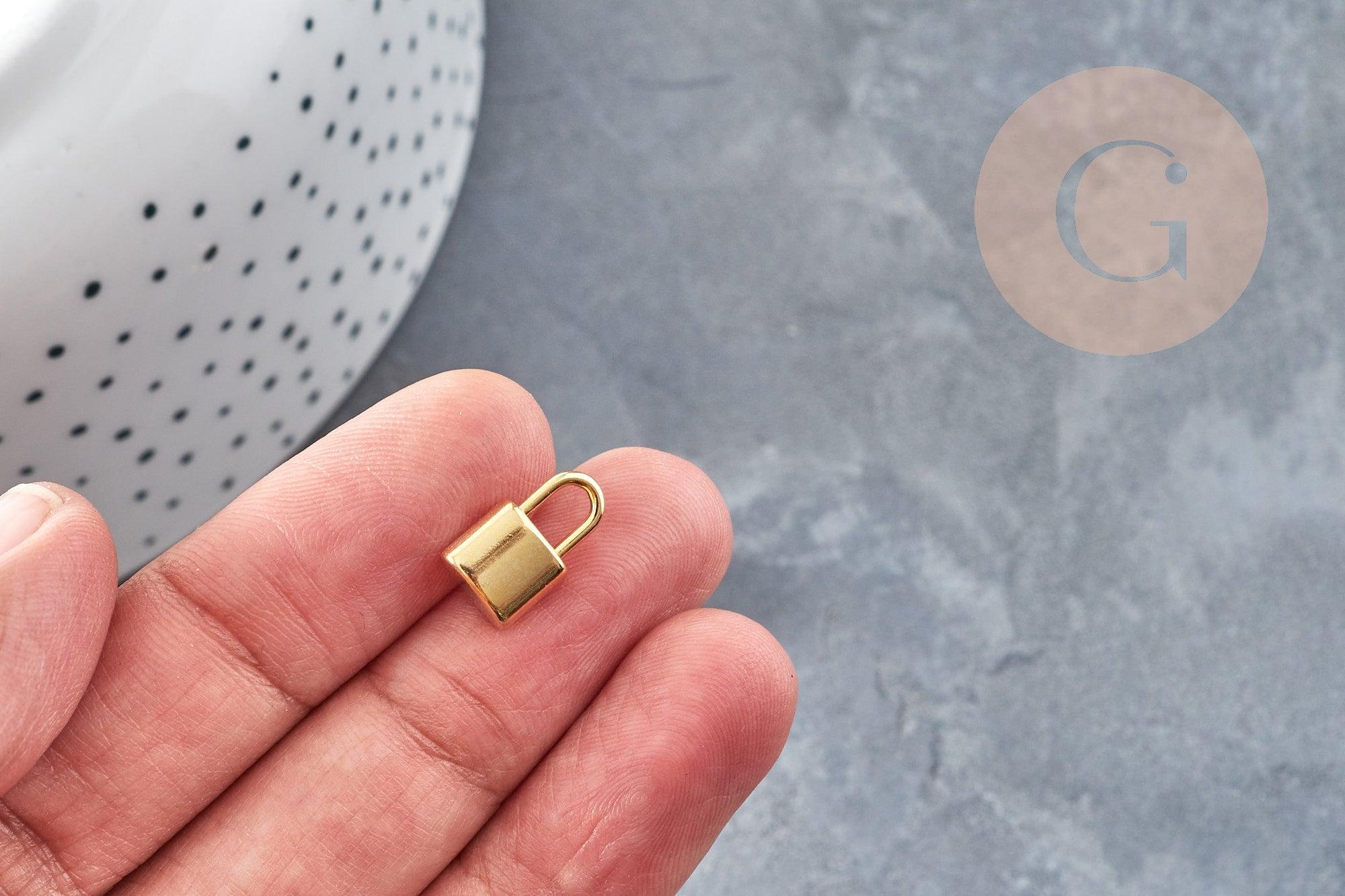Añade un toque de simbolismo a tus diseños de joyería con estos encantadores dijes de candado de acero inoxidable chapados en oro de 24 quilates . Estas pequeñas piezas miden 13,5 mm y aportan un significado profundo a sus joyas al tiempo que añaden un elegante brillo dorado.