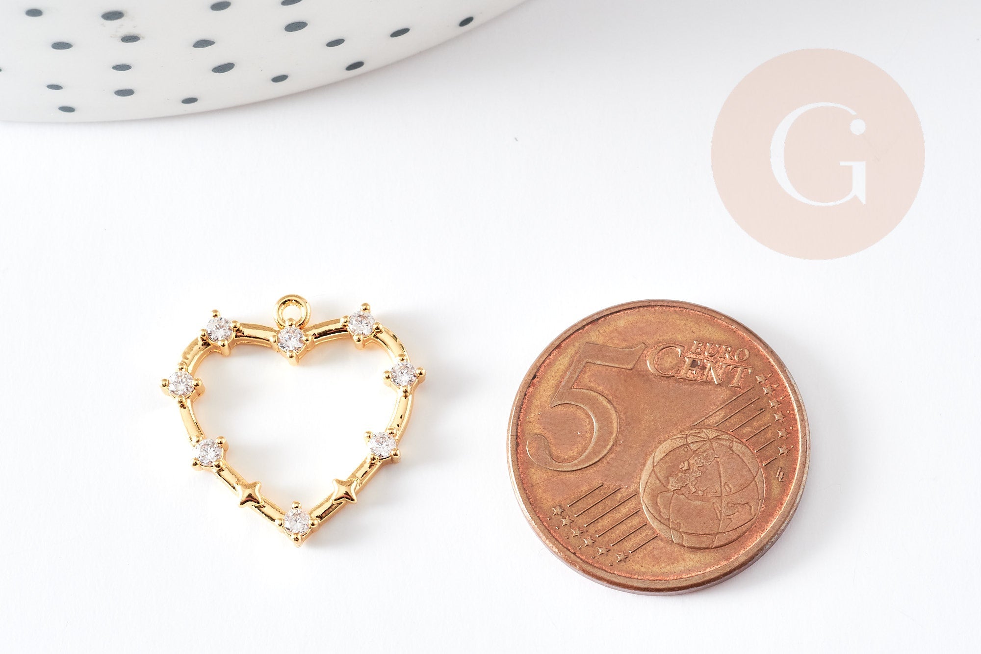 Charm corazón de latón oro cristal 18k, sin níquel, cruz de joyería, creación de joyas, colgante amor, colgante circonita blanca, 19mm, x1 G3591