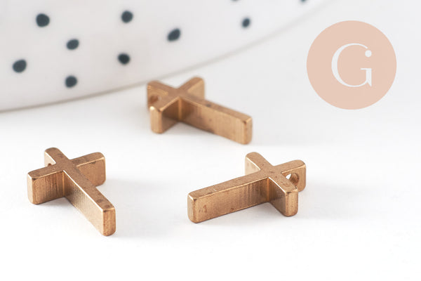 Encanto de cruz de latón crudo 13 mm, encantos de latón crudo, cruz de joyería, colgante de religión, x5 G0039