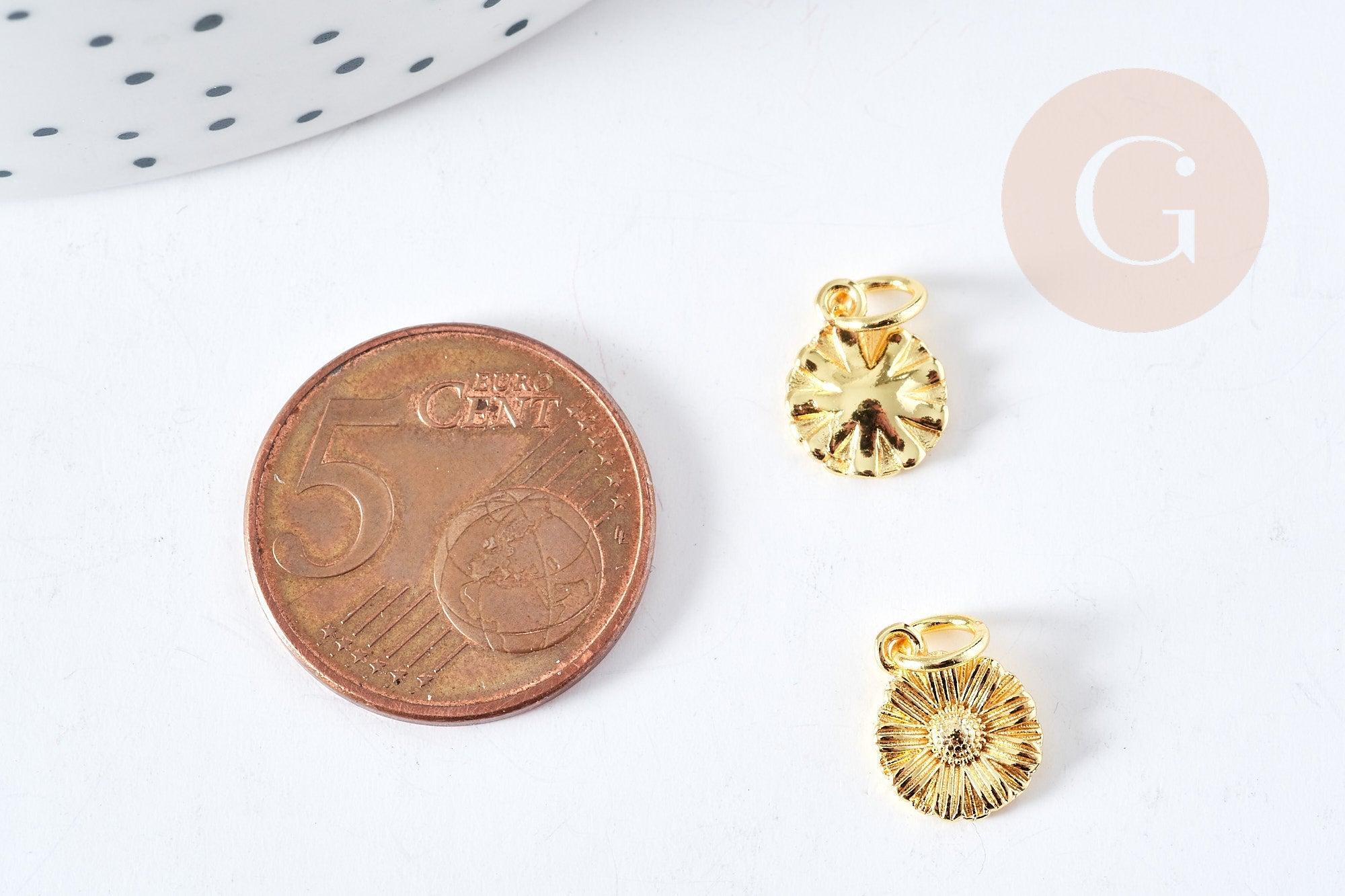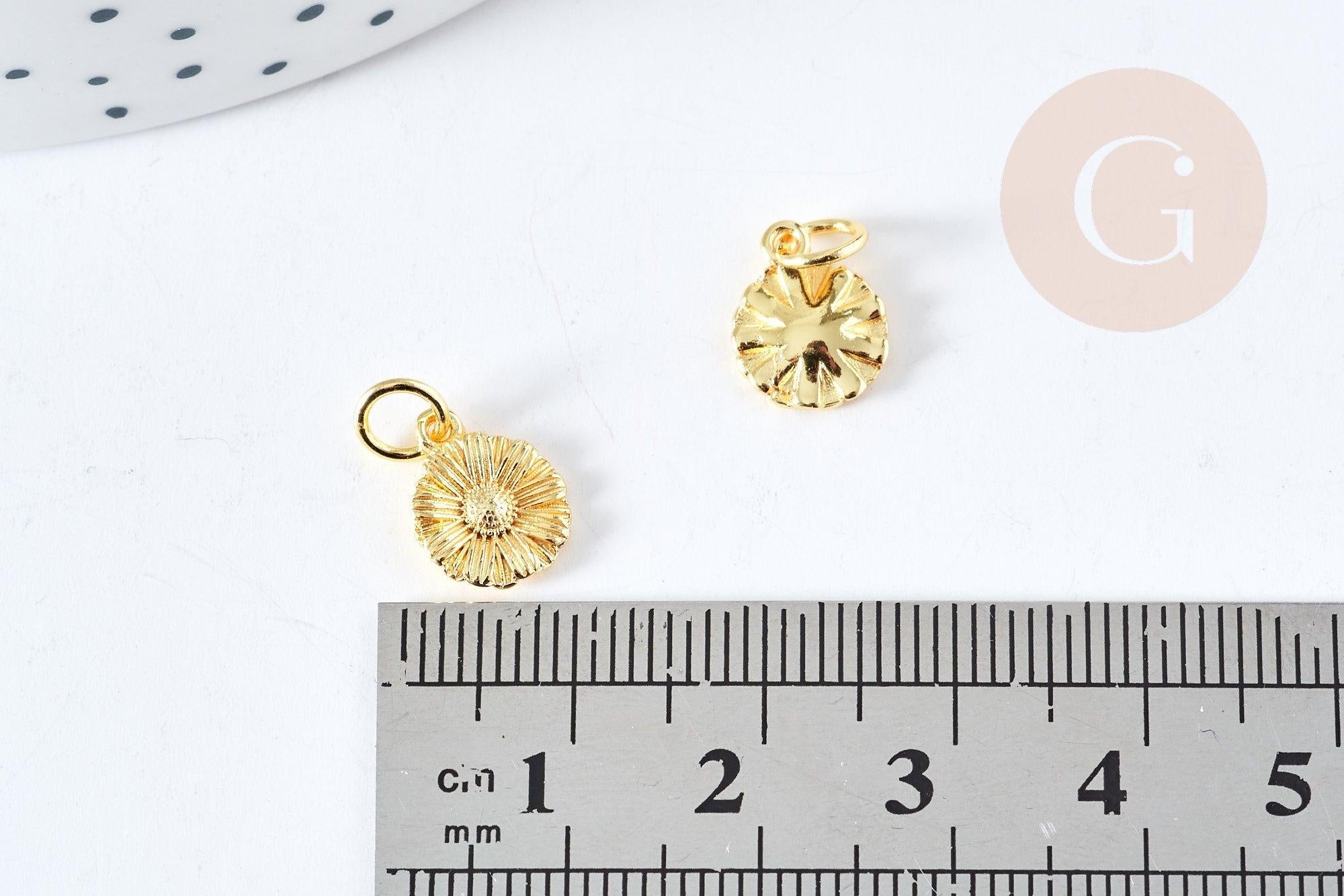 Luce este delicado charm de girasol , una pequeña joya dorada elaborada en latón con un auténtico baño de oro de 18 quilates. Gracias a su diseño finamente grabado y su asa integrada, se adapta fácilmente a todos tus proyectos de joyería DIY. Su acabado brillante le da un toque soleado y cálido, ideal para creaciones bohemias o veraniegas.