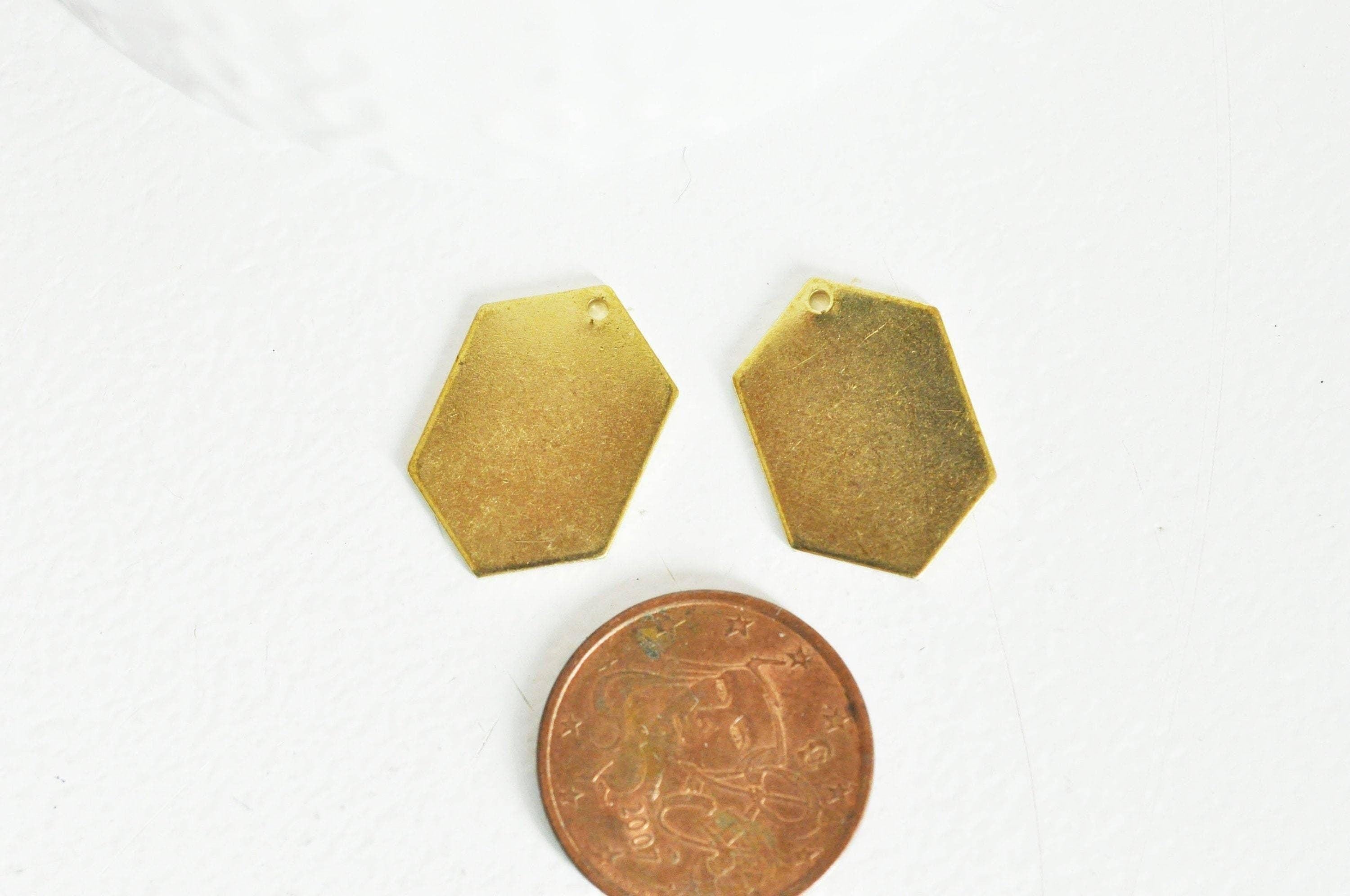 Encanto hexagonal de latón crudo, suministros creativos, colgante sin níquel, creación de joyas, colgante geométrico, 20x14 mm, juego de 5