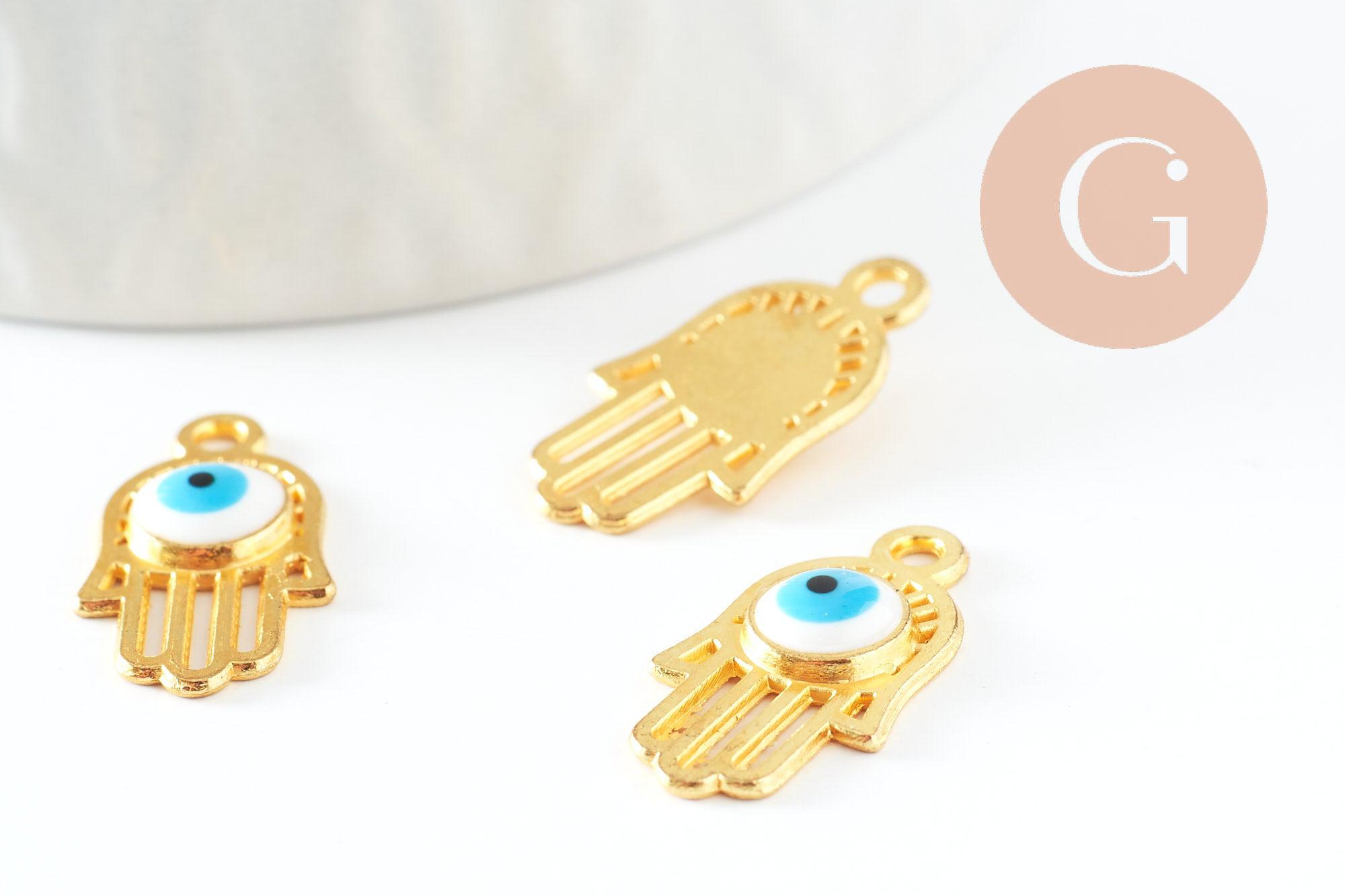 Charm mano de Fátima ojo latón chapado en oro 18k 20,5mm, colgante místico de la suerte para creación de joyas, x1 (G3511)
