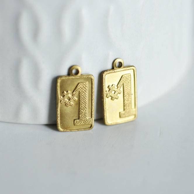 Encanto de medalla de latón, suministros de joyería, amuletos de latón crudo, amuleto de joyería, número 1, conjunto de 5, 15 mm