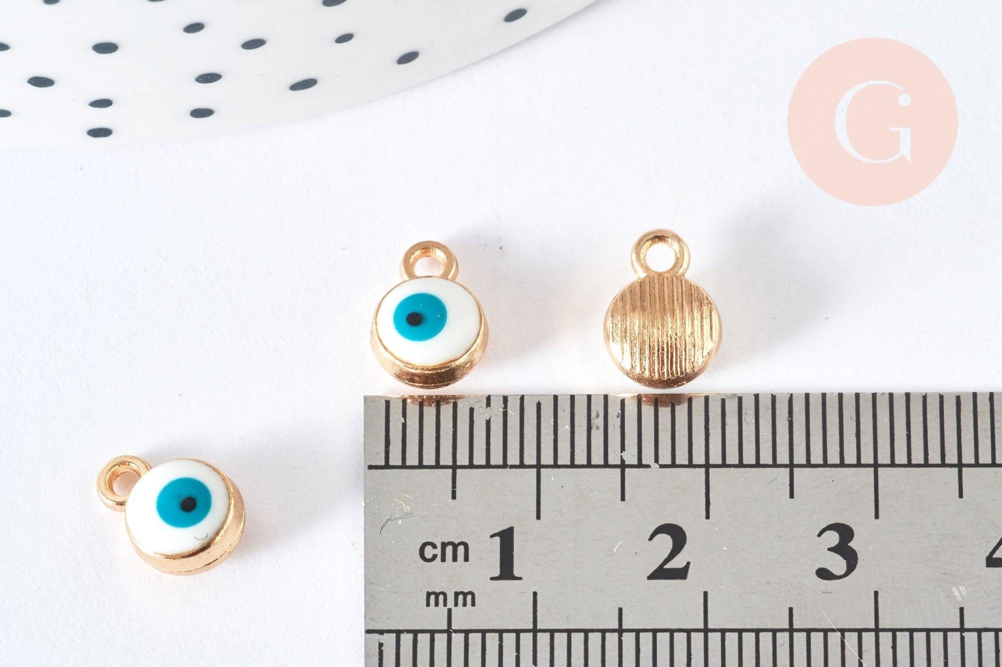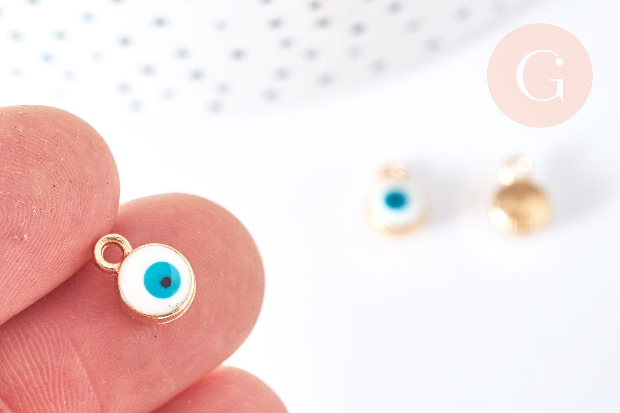 Encanto de ojo redondo de esmalte blanco 10 mm, colgante de resina contra el mal de ojo, creación de joyería de la suerte, x 10 G7117