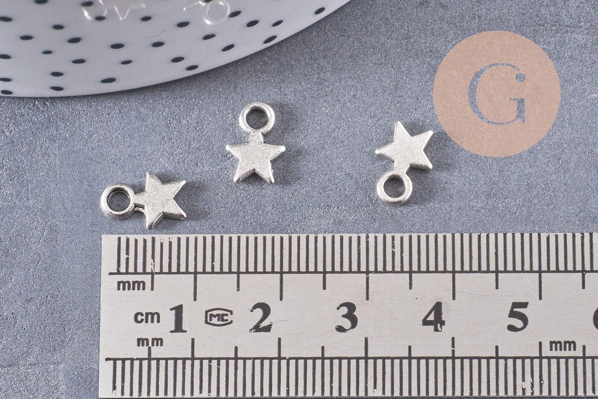 Charms de estrella de plata, suministros creativos, colgante de plata, colgante de estrella, estrella de plata, creación de joyas, 1 cm, juego de 50,