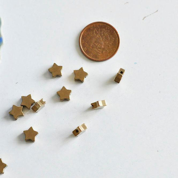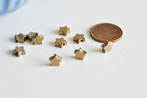 Espaciadores de estrella de latón crudo, chapados en oro, suministros para joyería, dijes de latón crudo, estrella, 8 mm, paquete de 10