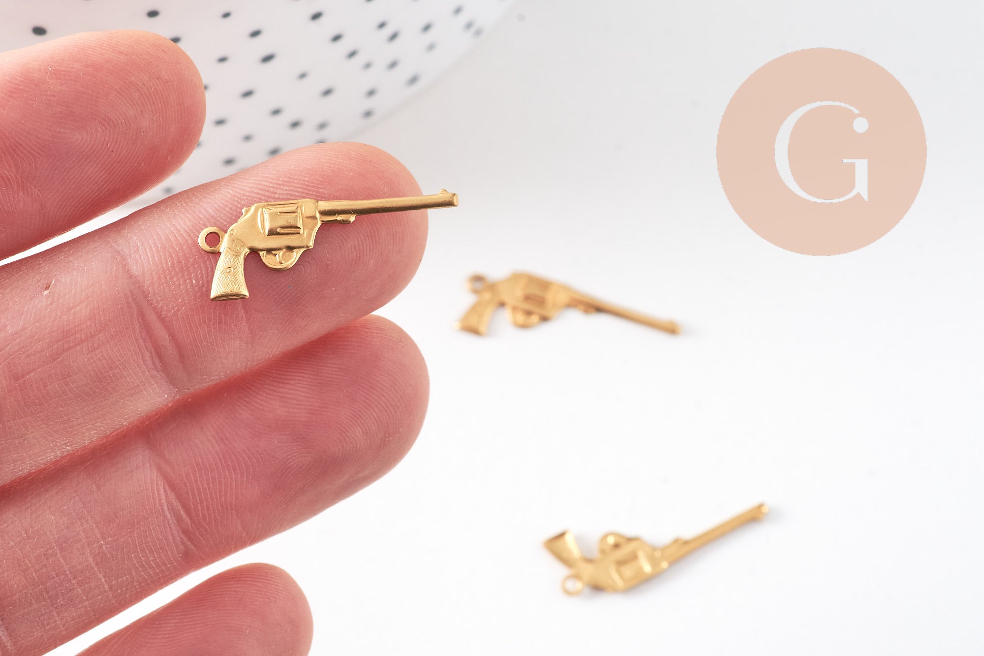 Un bonito colgante con dije en latón dorado. Piezas ideales para realizar bonitos pendientes, para completar un collar o una pulsera, sobre el tema del western Casino.