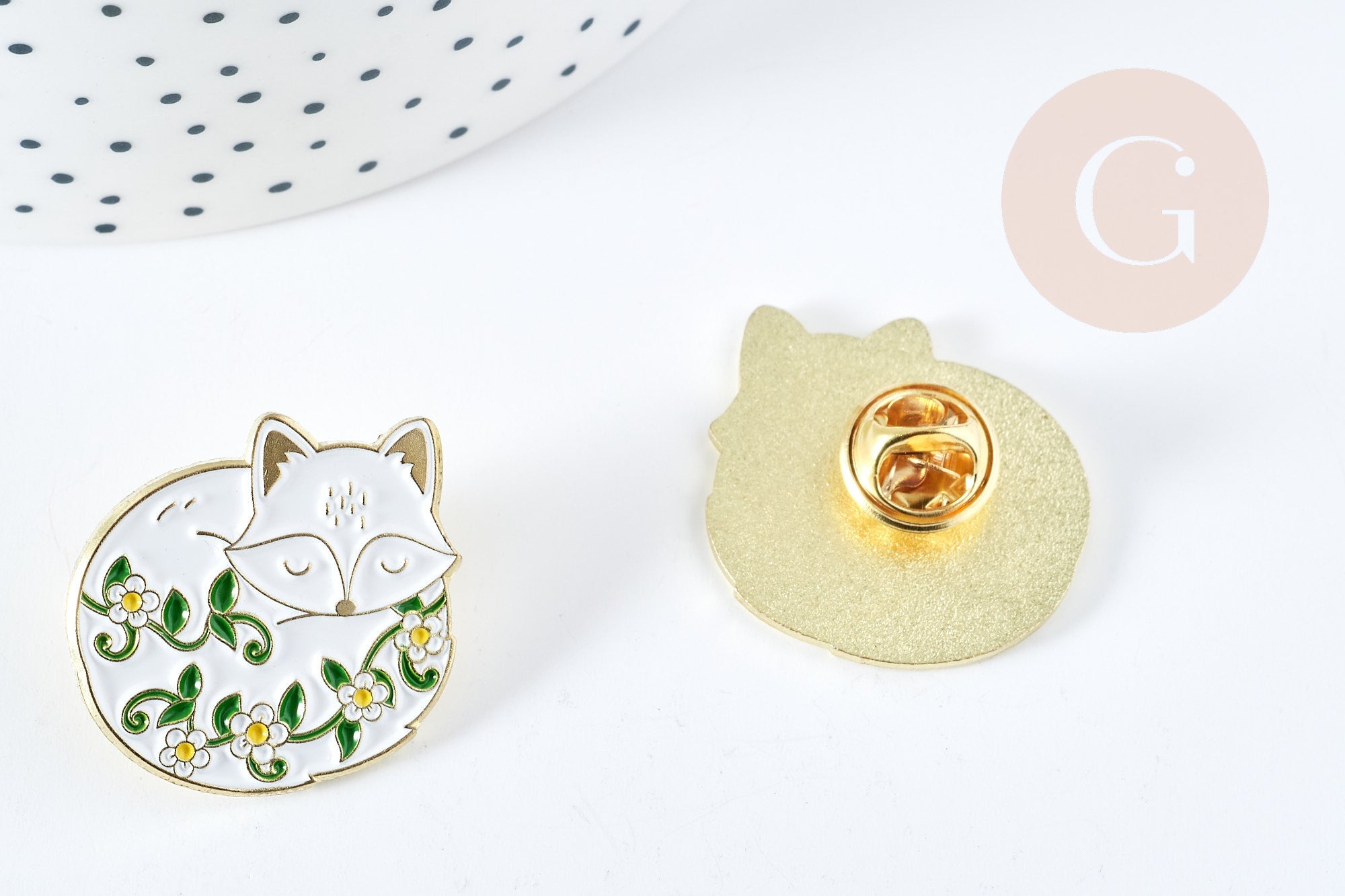 Te ofrecemos este precioso broche / pin de zorro blanco decorado con motivo vegetal , en zamac dorado y esmalte de color. ¡Quedará perfecto en una chaqueta pequeña, una camisa o incluso un abrigo! Un accesorio bastante afortunado para acumular...