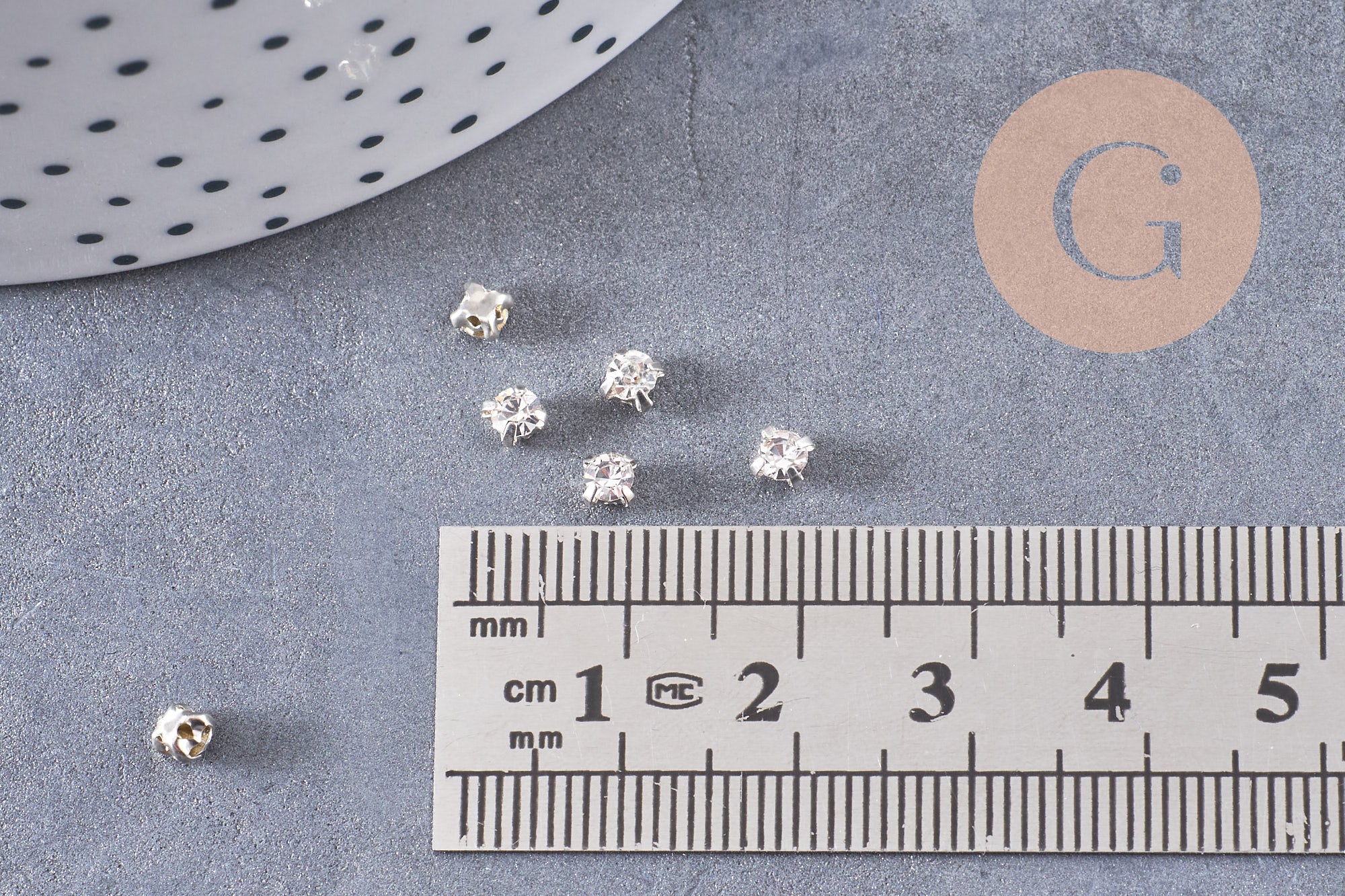 Cabochon carré cristal transparent métal platine à coudre 3mm, x50 (G0139)