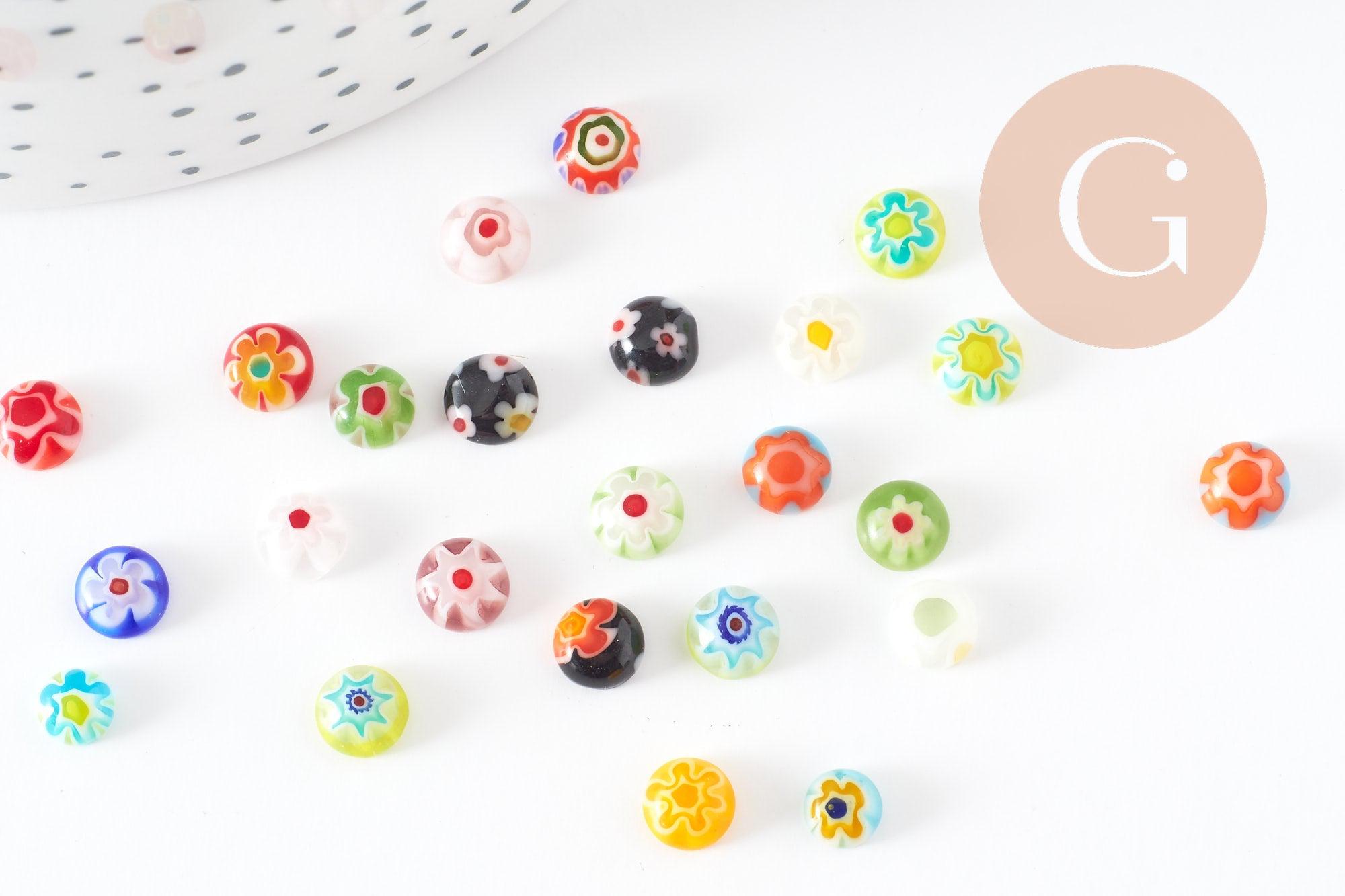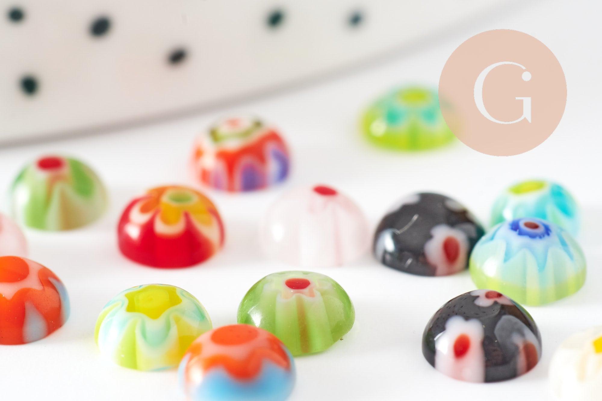 Cabujón redondo de cúpula marquesa millefiori, suministros creativos, cabujones de vidrio, vidrio millefiori, hecho a mano, 5-7 mm, lote de 50 lote de 50 = 8 gr Déjese seducir por estos cabujones de cristal millefiori trabajados a mano y en...