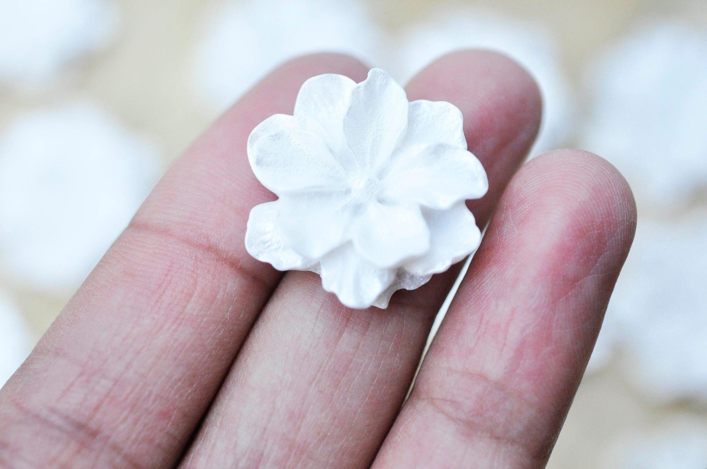 Un bonito cabujón de flores en resina nacarada blanca opaca.