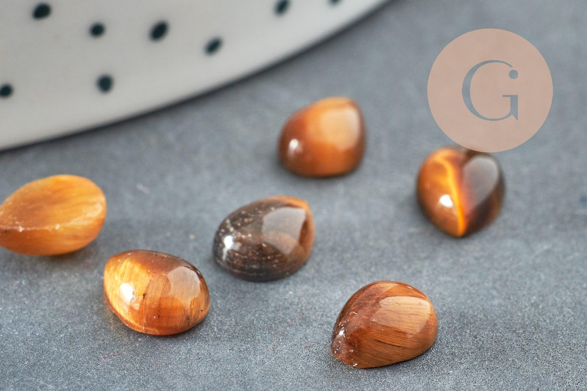 Cabochon goutte Œil de tigre naturel 8x6mm, x1 (G7572)