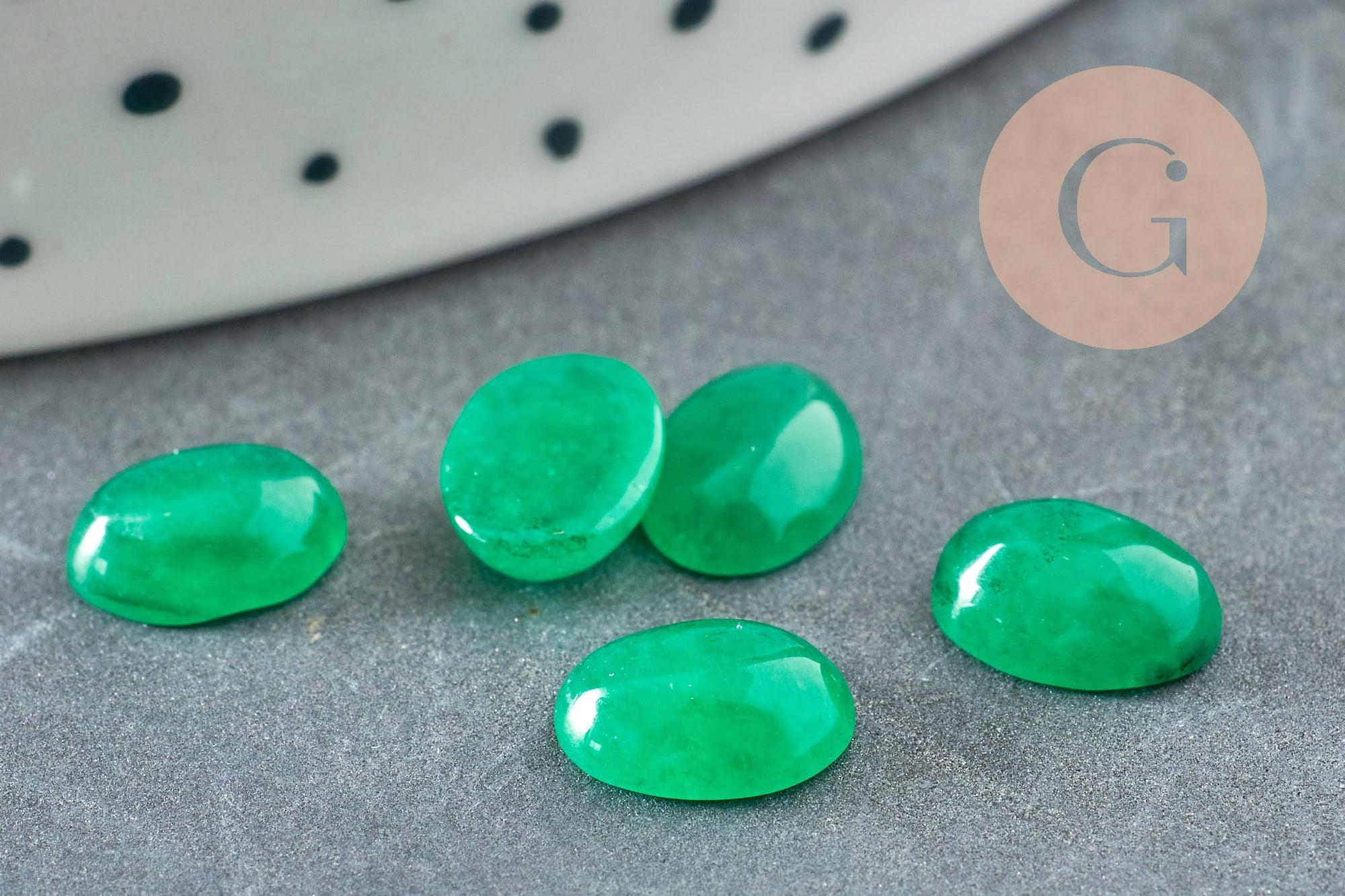 Este cabujón de jade verde natural , de forma ovalada (8x6 mm) , es una pequeña piedra con delicados matices verdes, perfecta para añadir un toque de naturaleza y serenidad a tus creaciones.