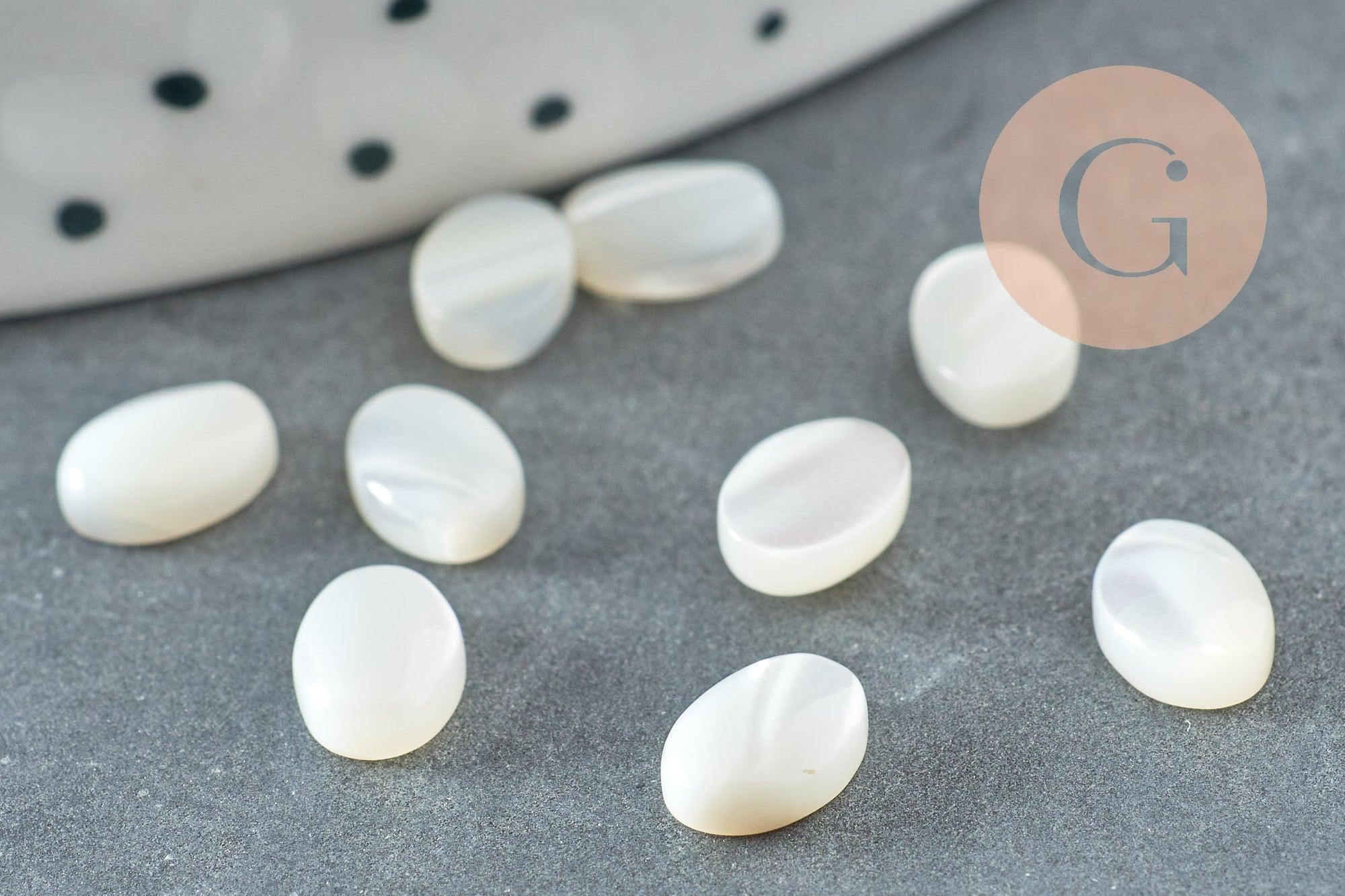 Cabochon ovale nacre blanche naturelle 7x4mm, x1 (G3728)