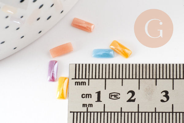 Cabujón rectangular de porcelana iridiscente, materiales para manualidades, cabujones, porcelana, hecho a mano, 3 mm x 7 mm, paquete de 50