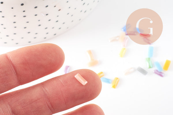 Cabujón rectangular de vidrio iridiscente de 3 mm x 7 mm, x50 (2,3 g) (G2292)