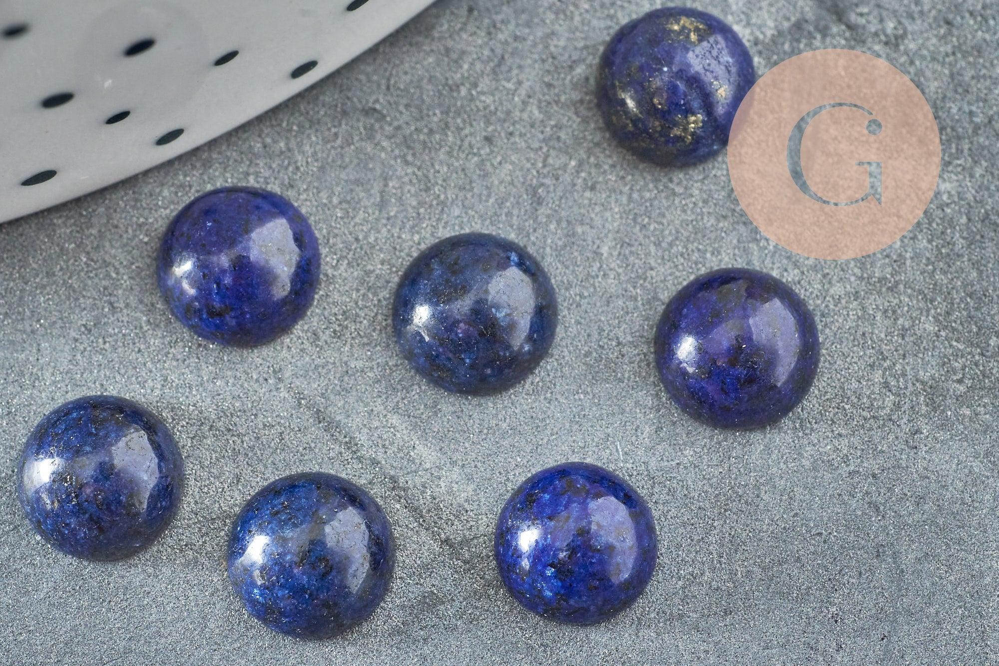 Este cabujón redondo de lapislázuli azul natural mide 8 mm y se caracteriza por su magnífico color azul profundo , típico del lapislázuli.