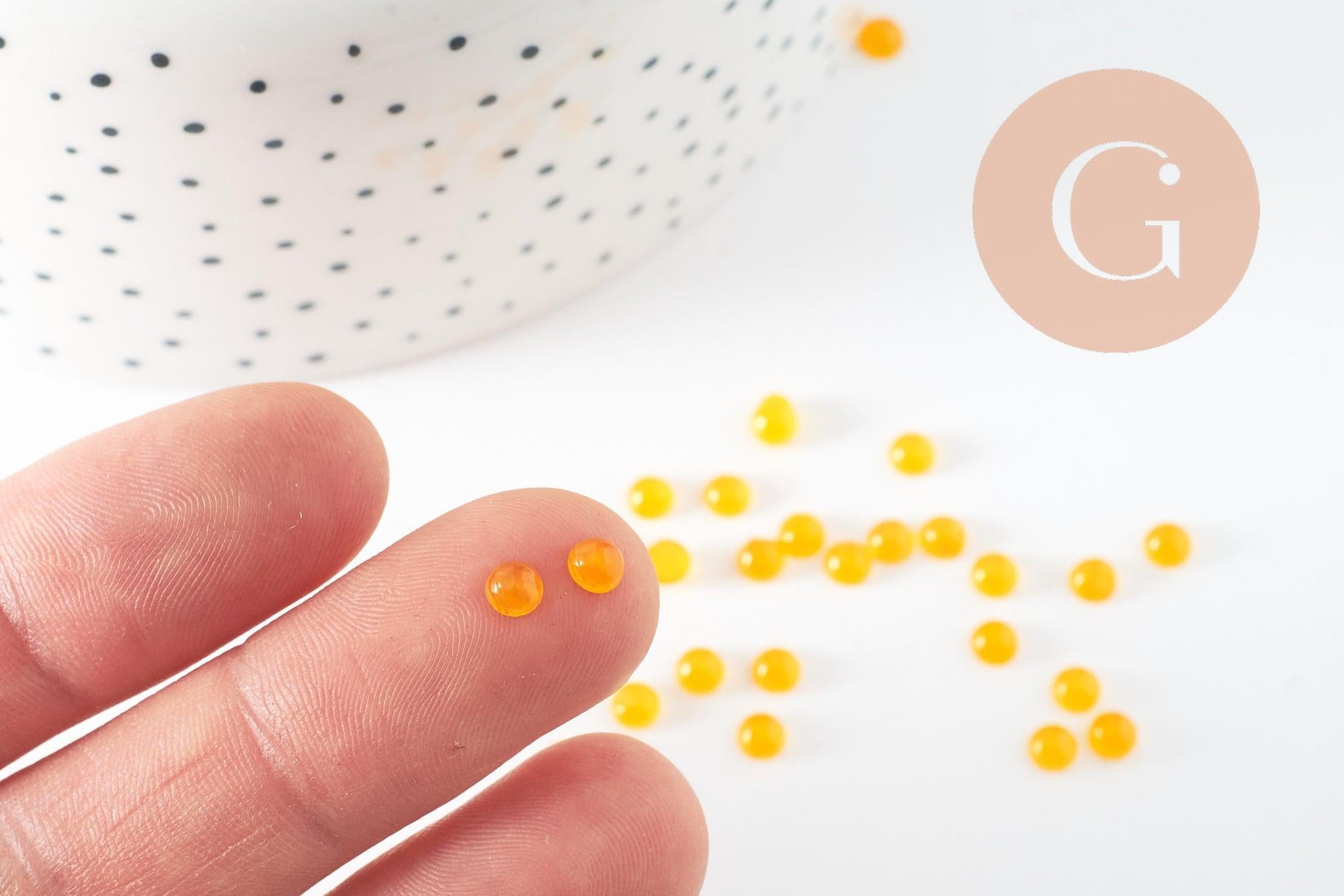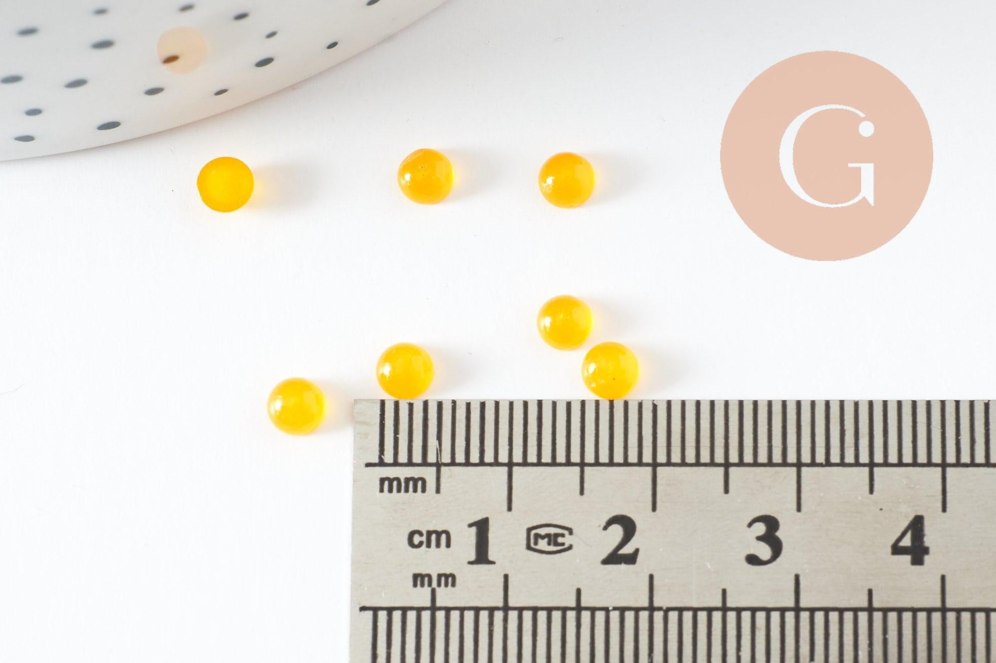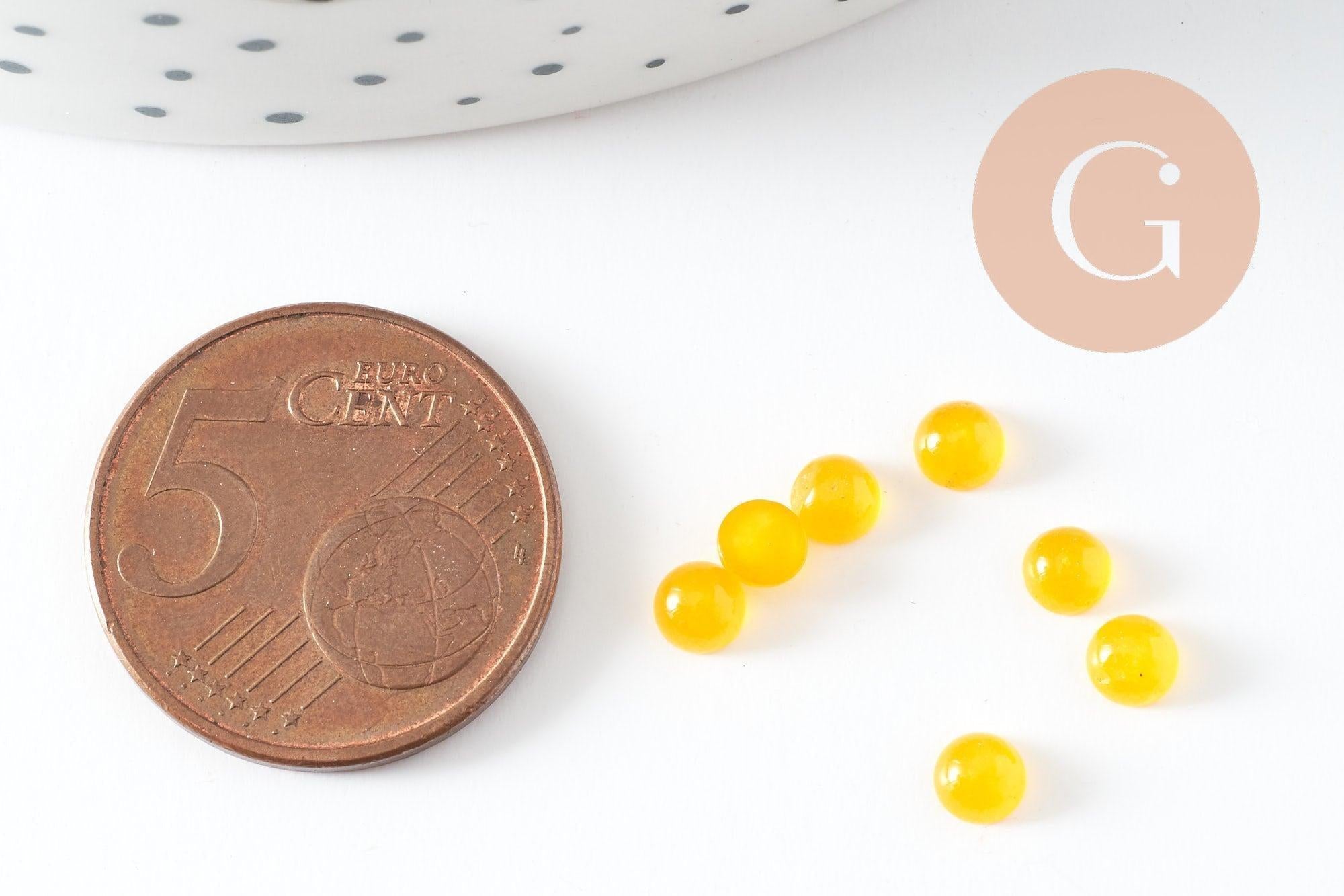 Añade un toque brillante y chispeante a tus diseños con este cabujón redondo de jade natural de color amarillo brillante.