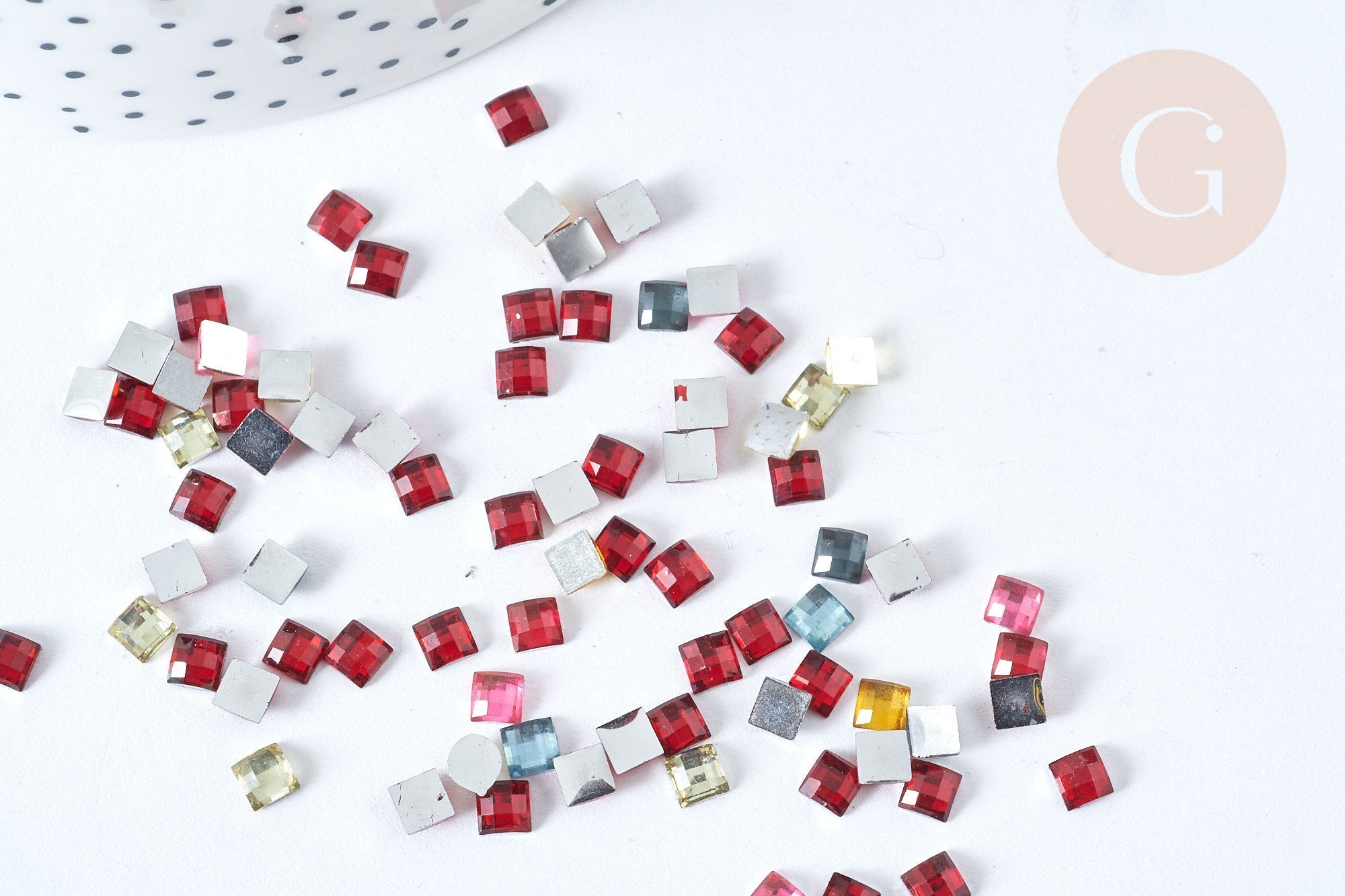 Exprese su creatividad y personalice su ropa y accesorios en textil o cuero suave con este juego de 5 gramos de cabujones cuadrados de plástico multicolor con diamantes de imitación.