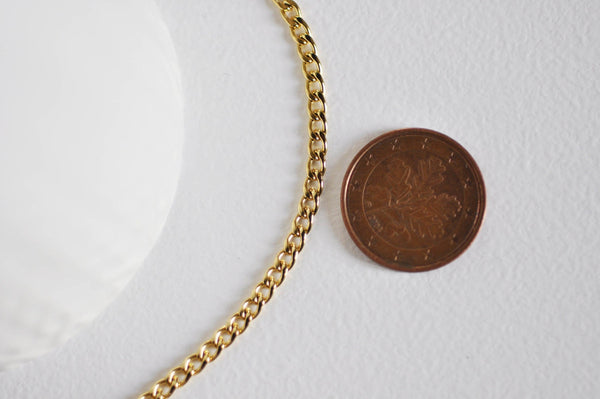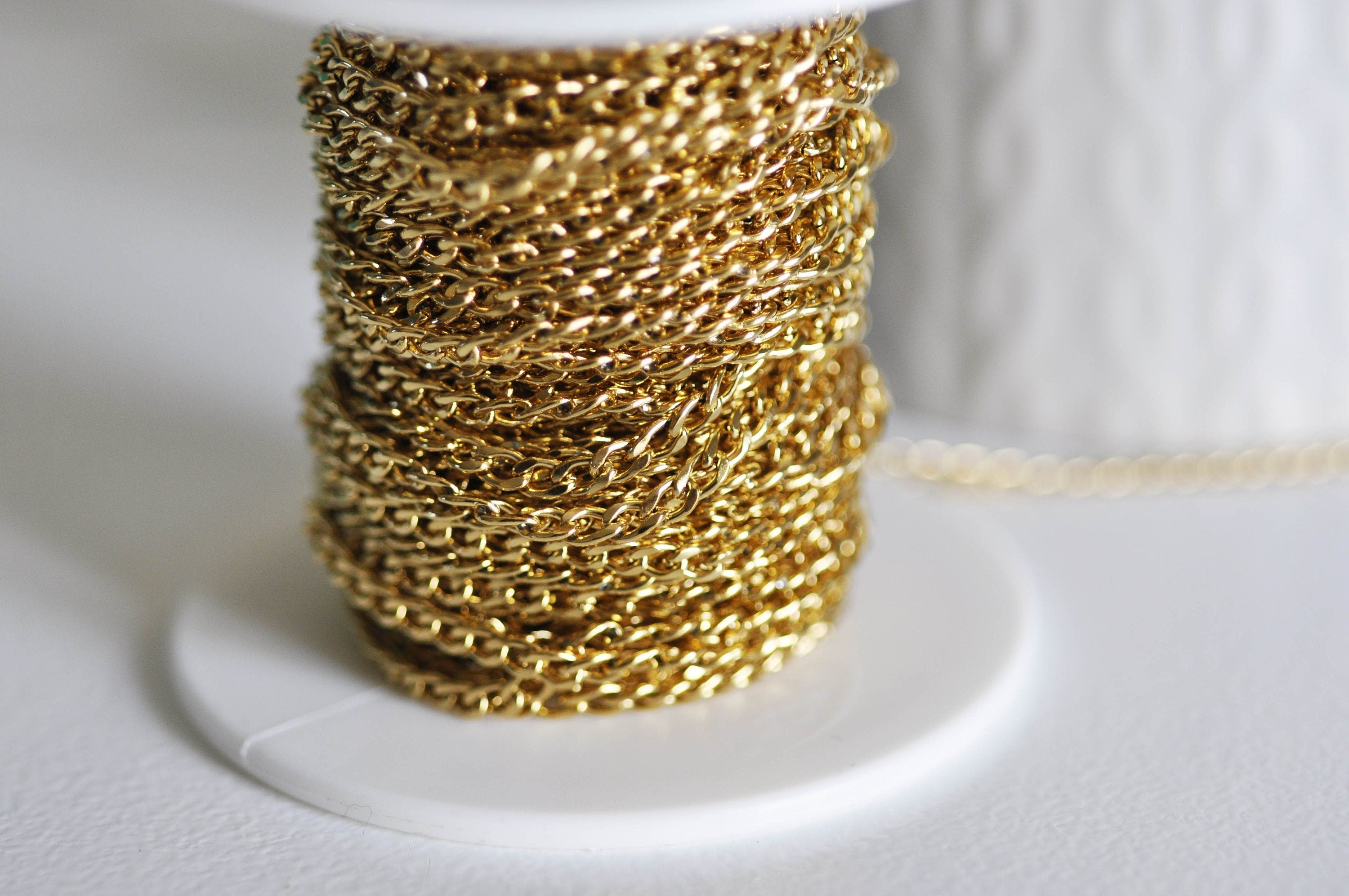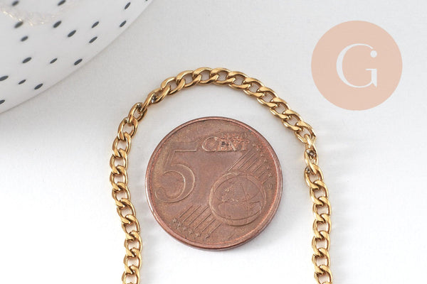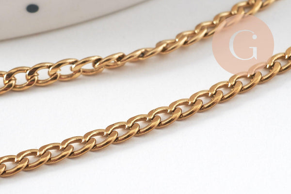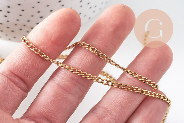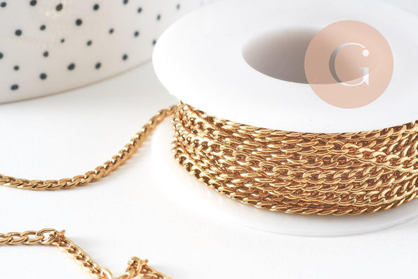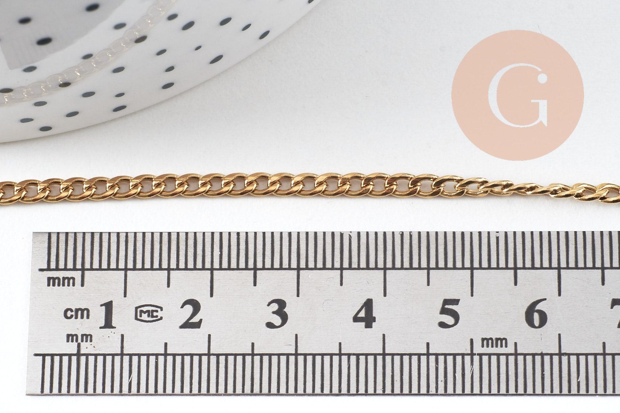 Dale un toque elegante y duradero a tus creaciones con esta cadena barbada de acero inoxidable con baño de oro IP de 18 quilates . Perfecta para crear rápidamente elegantes collares, pulseras o collares largos, combina calidad y estilo.
