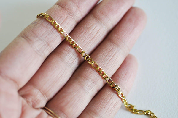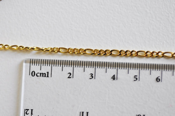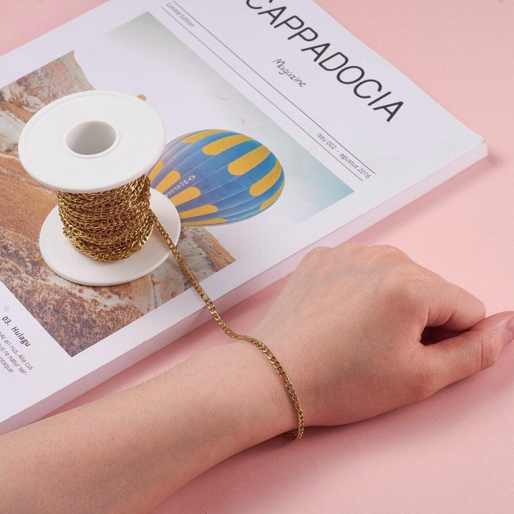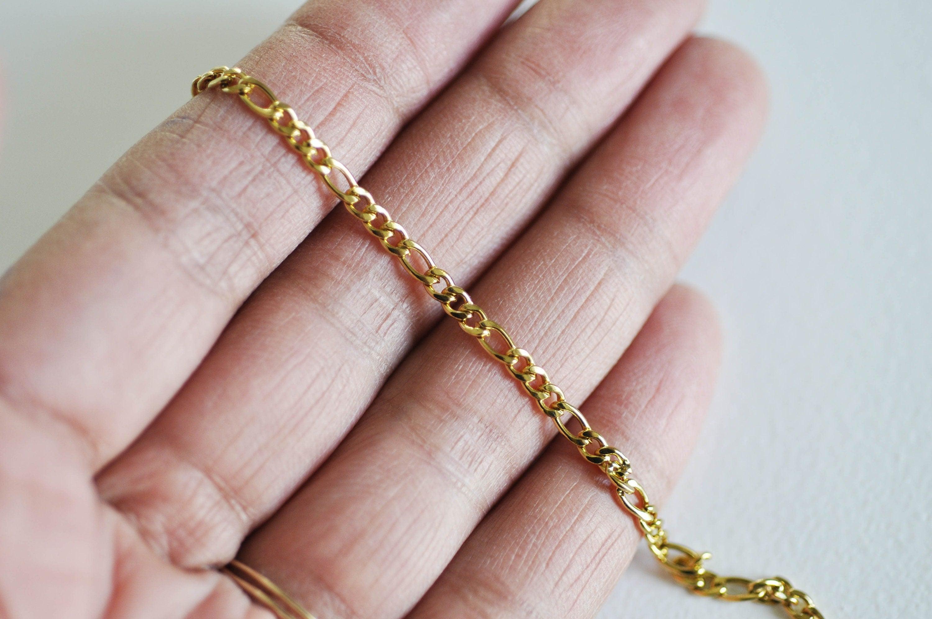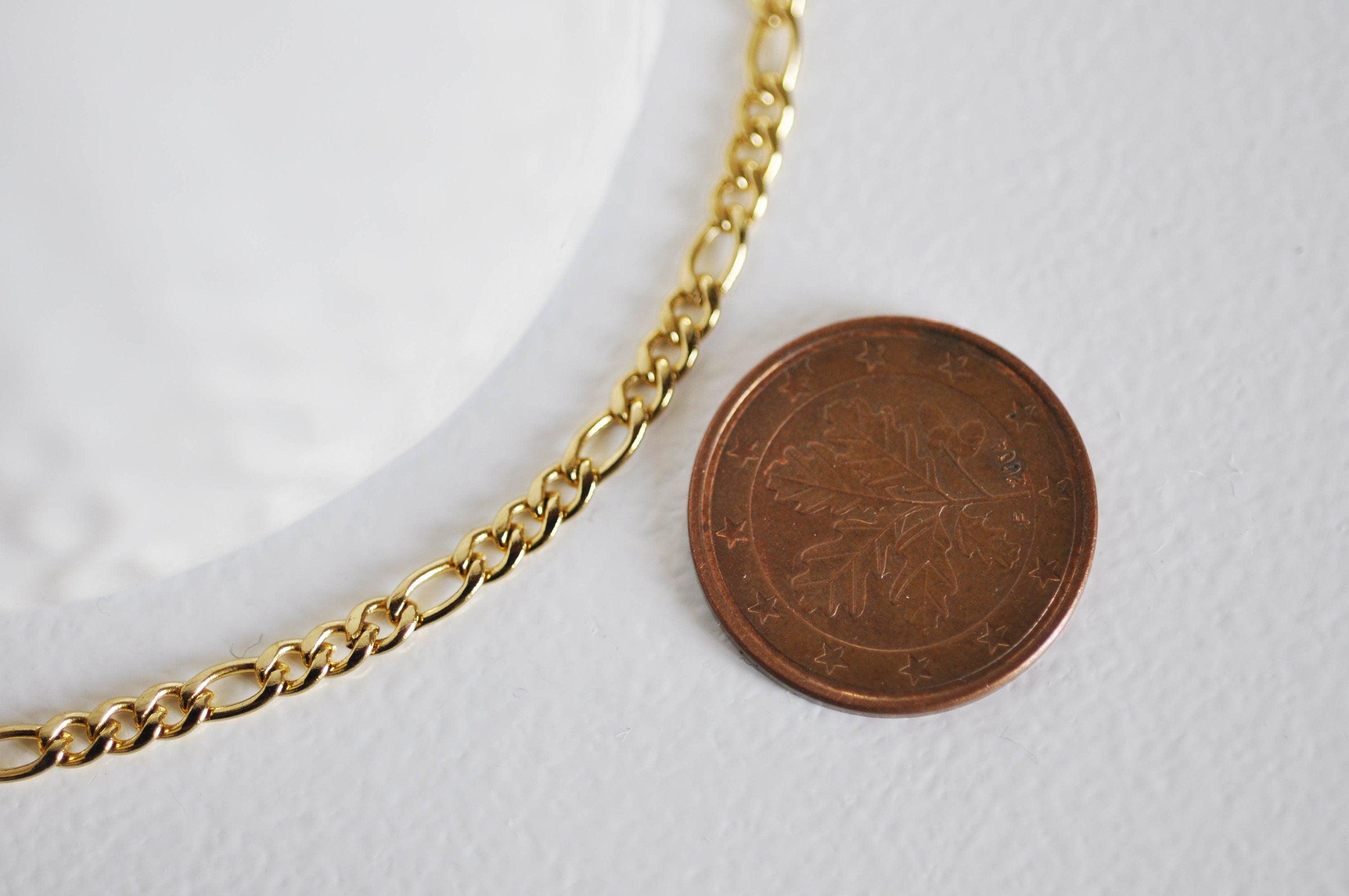 Cadena de acero bañada en oro de 18 quilates, eslabón figaro, cadena de calidad, cadena para collar, creación de joyas, cadena completa, acero inoxidable, 4x3 mm, se vende por metro