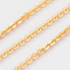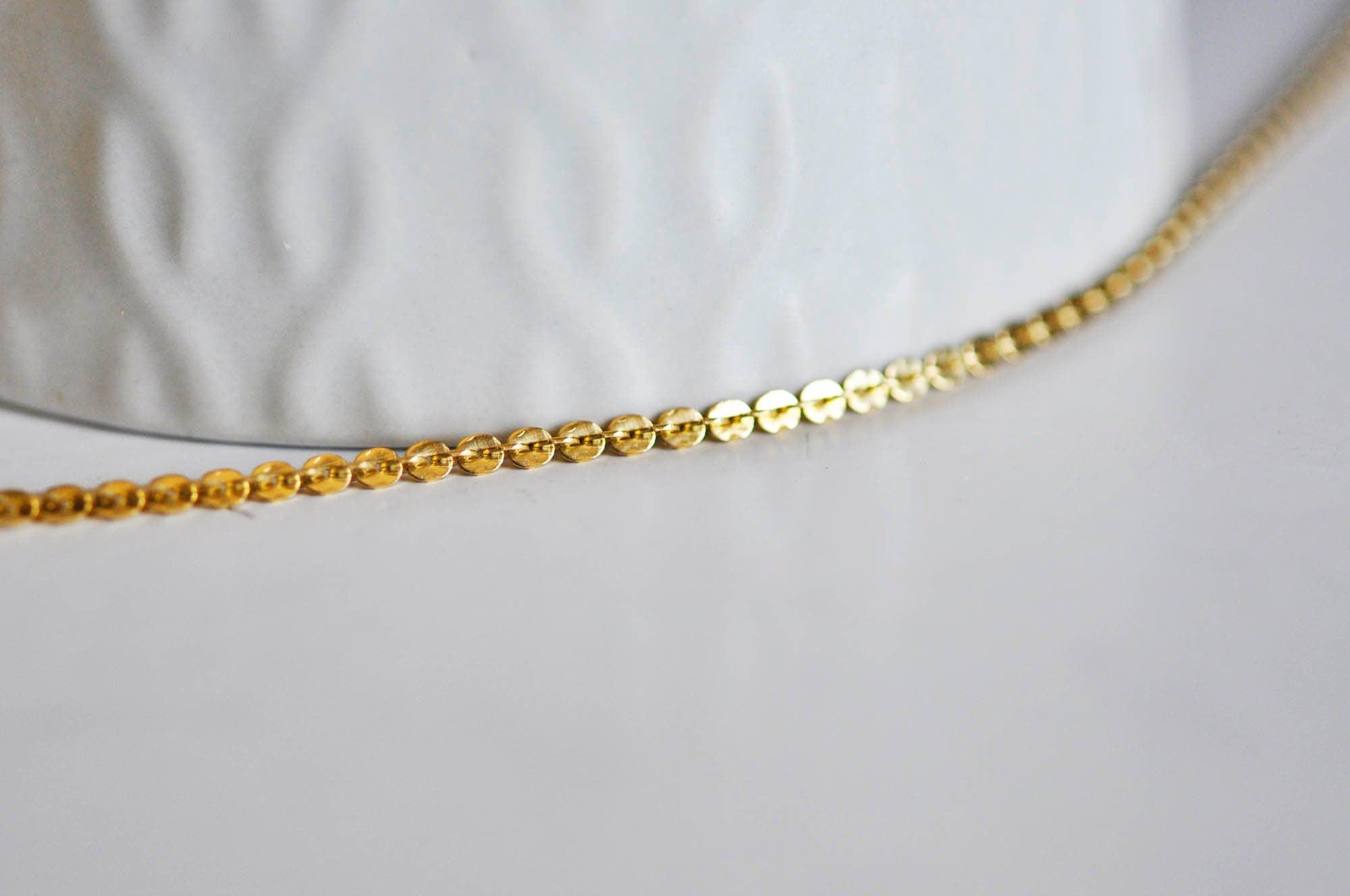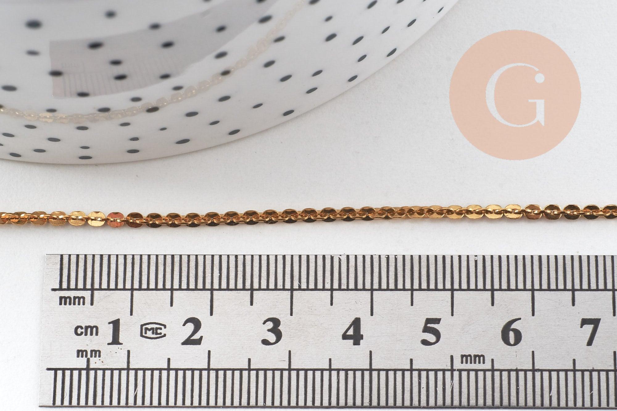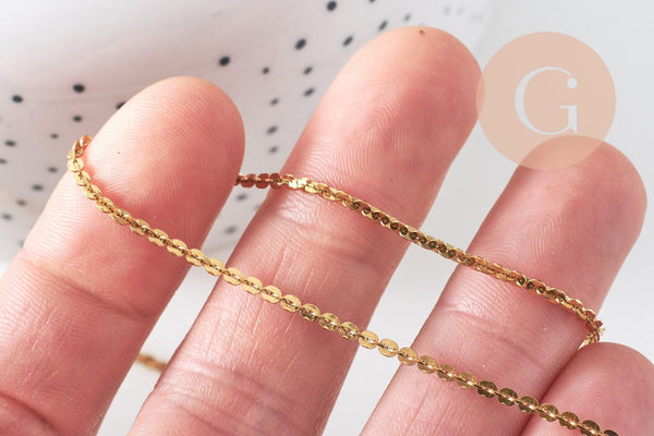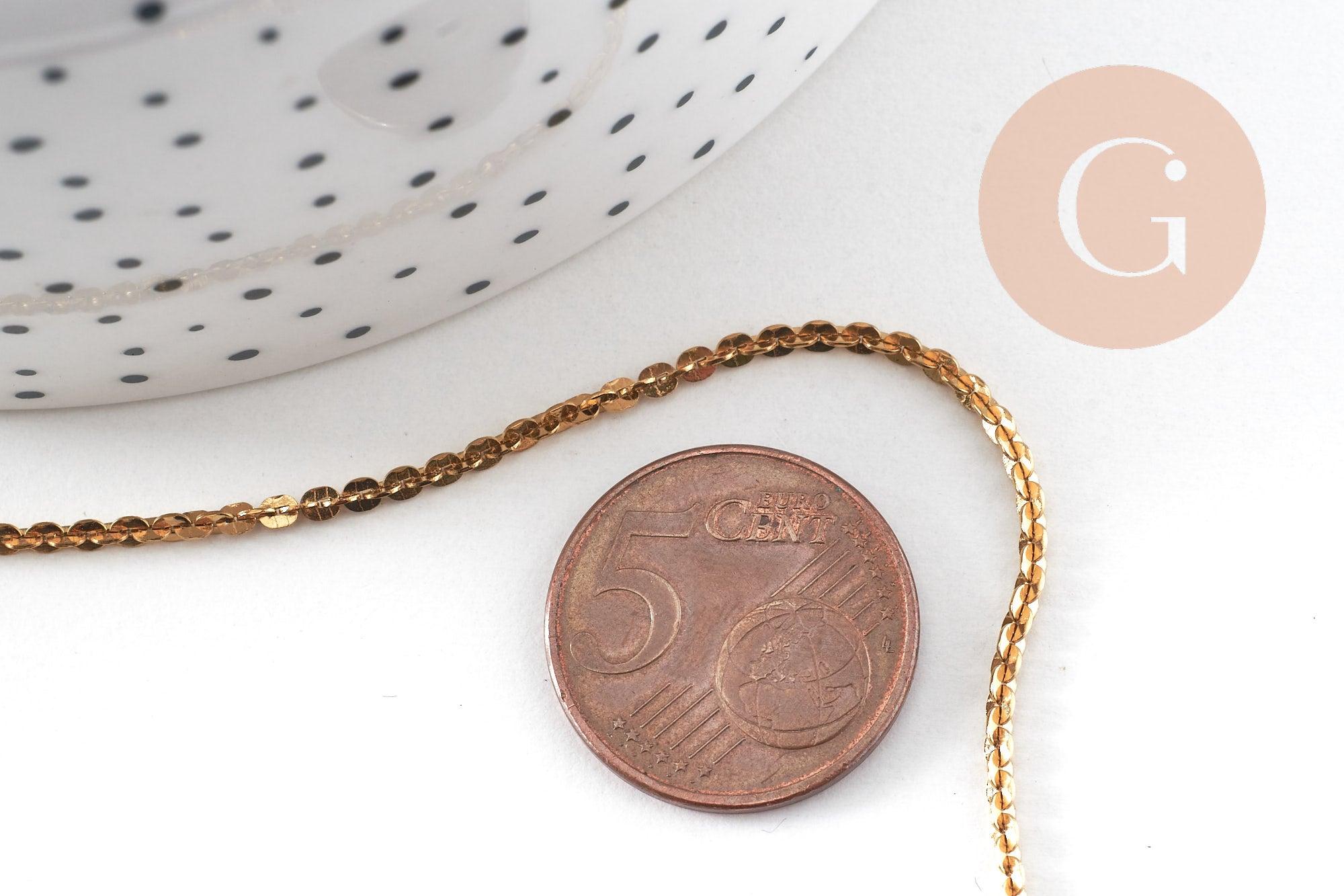 Déjate seducir por esta elegante cadena de acero inoxidable bañada en oro IP de 14 quilates , decorada con pequeños discos redondos soldados para un efecto luminoso y refinado. Ideal para creaciones modernas y femeninas, esta cadena aporta movimiento y brillo a tus joyas DIY, garantizando al mismo tiempo una excelente durabilidad en el tiempo gracias a la robustez del acero inoxidable.