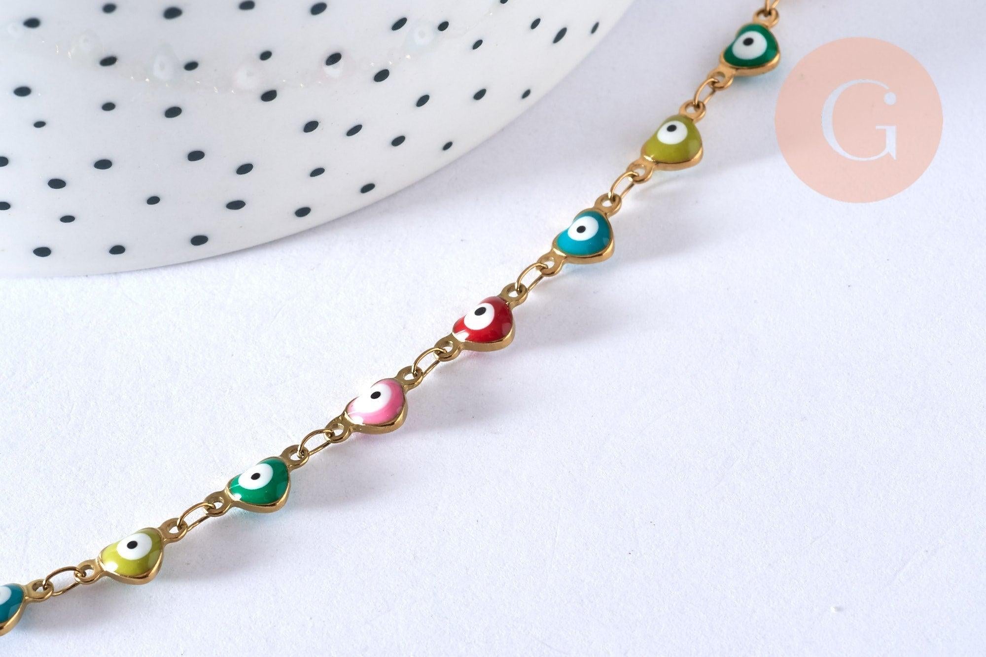 Cadena de acero dorado de 14k resina de color mal de ojo, cadena de collar elegante, cadena completa, 10 mm, 45 cm, x1 G5352