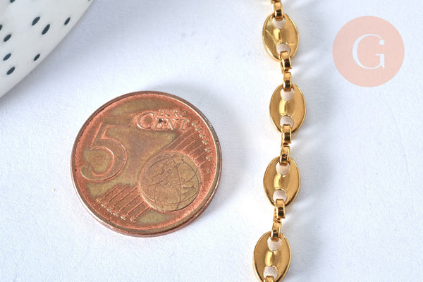 Chaine complète acier dorée 14k grain de café,chaine fantaisie, acier doré inoxydable ,chaine complète,45cm, x1 G5801