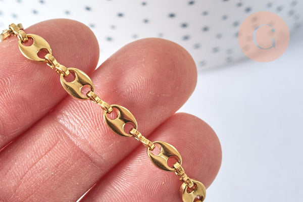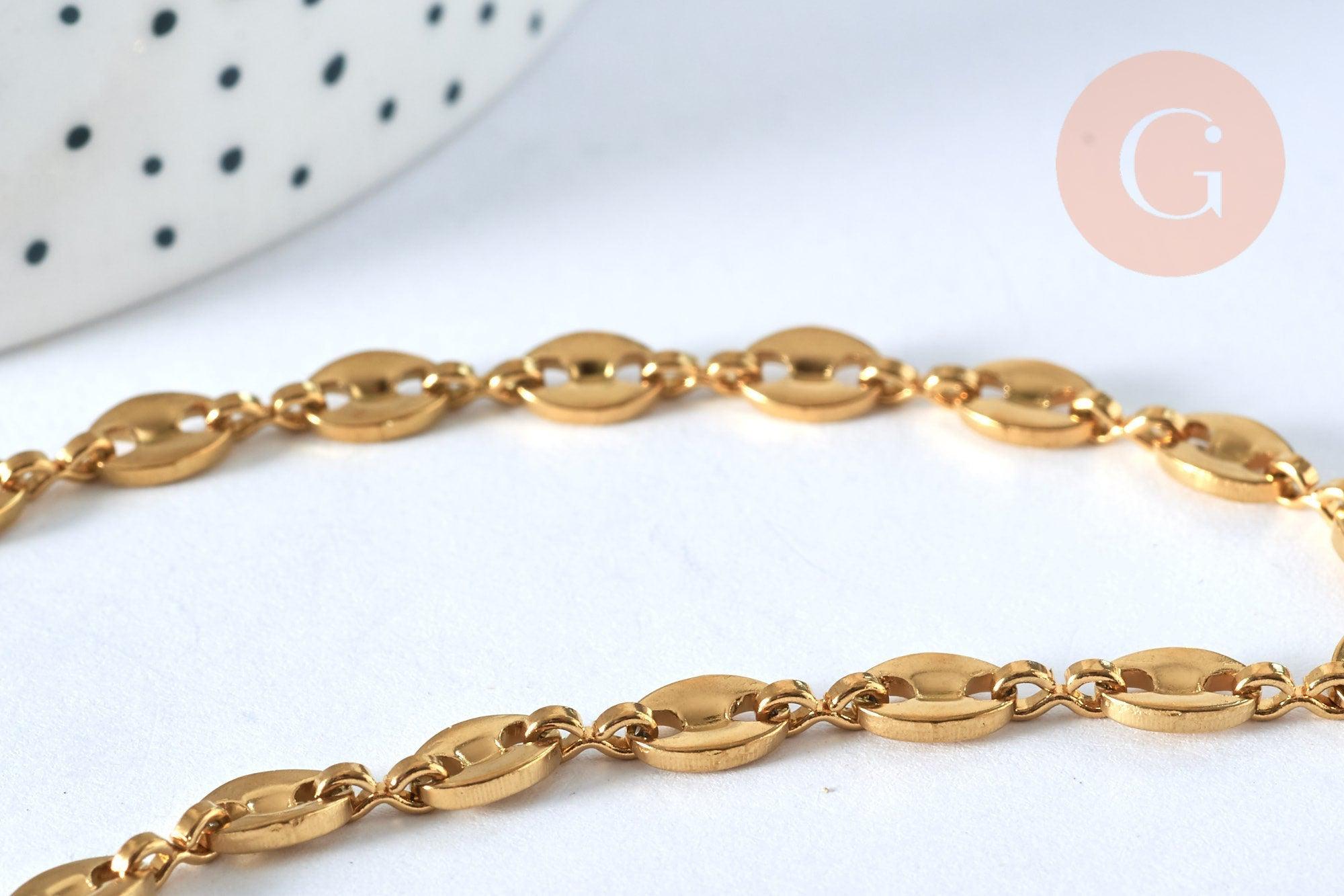 Cadena completa acero oro 14k grano de café, cadena fantasía, acero inoxidable oro, cadena completa, 45cm, x1 G5801