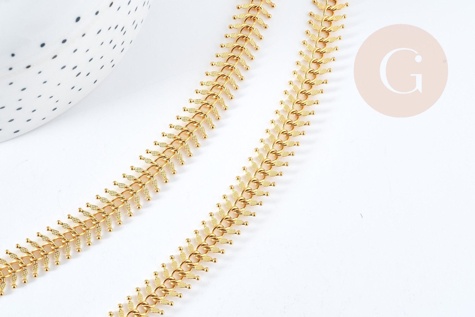 Cadena completa de espiga de pescado en acero inoxidable 304 dorado de 45 cm, creación de joyas de acero inoxidable xxL x1 (G8358)