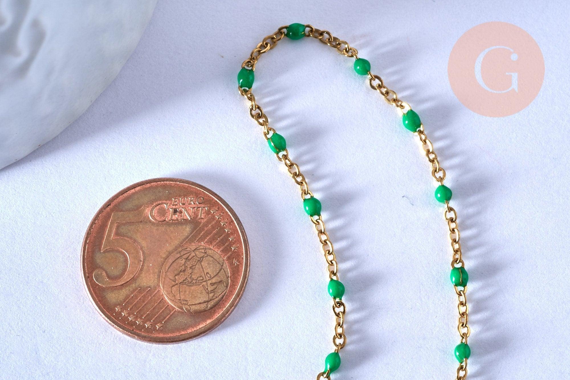 Tobillera de acero bañada en oro de 14k, resina verde, cadena de oro de 1,5-2 mm/23 cm, x1 G3661