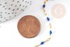 Chaine acier inoxydable 304 doré IP 14k fantaisie résine bleue 2mm, x1 mètre (G0942)
