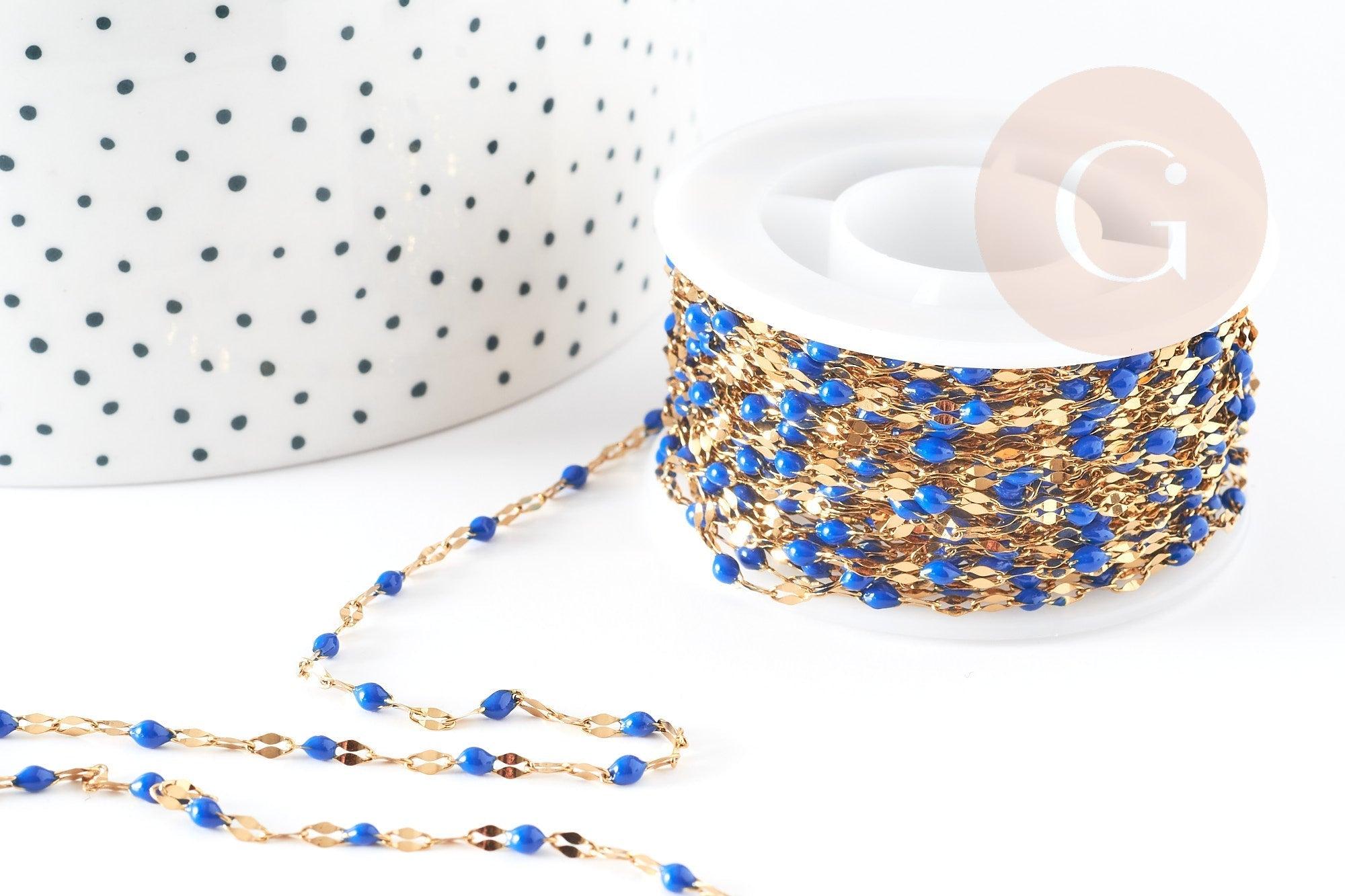 Cadena de acero inoxidable 304 oro IP 14k resina azul fantasía 2 mm, x1 metro (G0942)