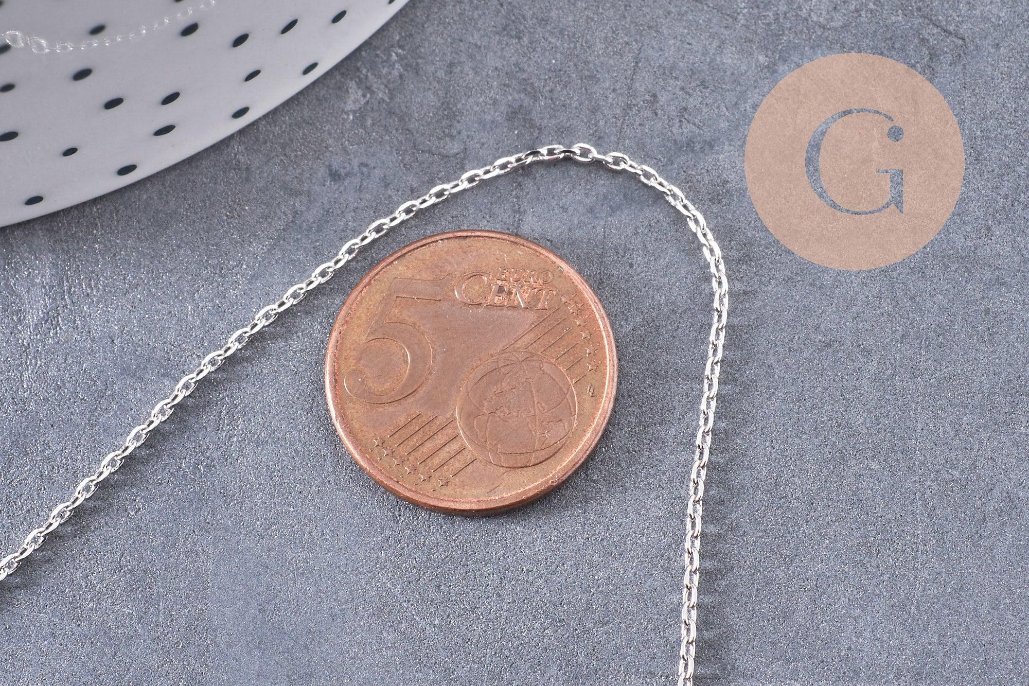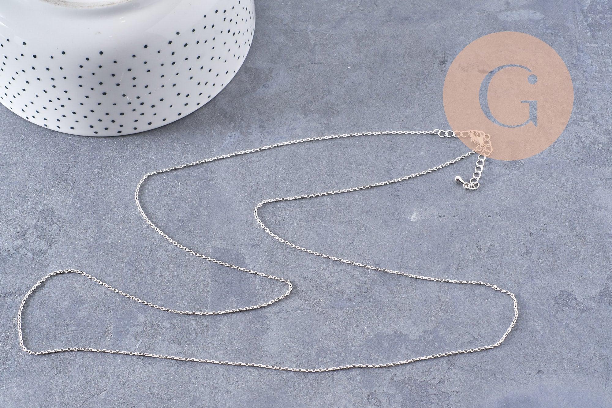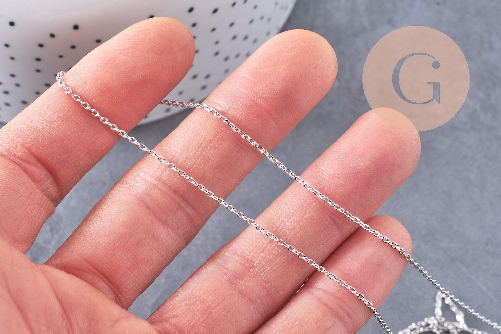 Cadena rodiada, materiales creativos, cadena para collares, creación de joyas, cadena completa, cobre plateado, cadena bañada en oro blanco 80cm