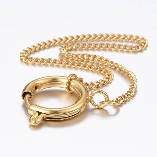 Una bonita cadena de extensión dorada de acero inoxidable que se vende con su gran cierre de boya.