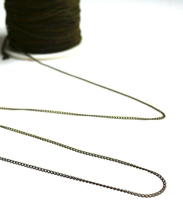 Cadena de malla plana de bronce fino, suministro creativo, cadena de bronce, cadena de joyería, creación de joyas, mayorista de cadenas, 1 mm, cadena de bronce, 2 metros
