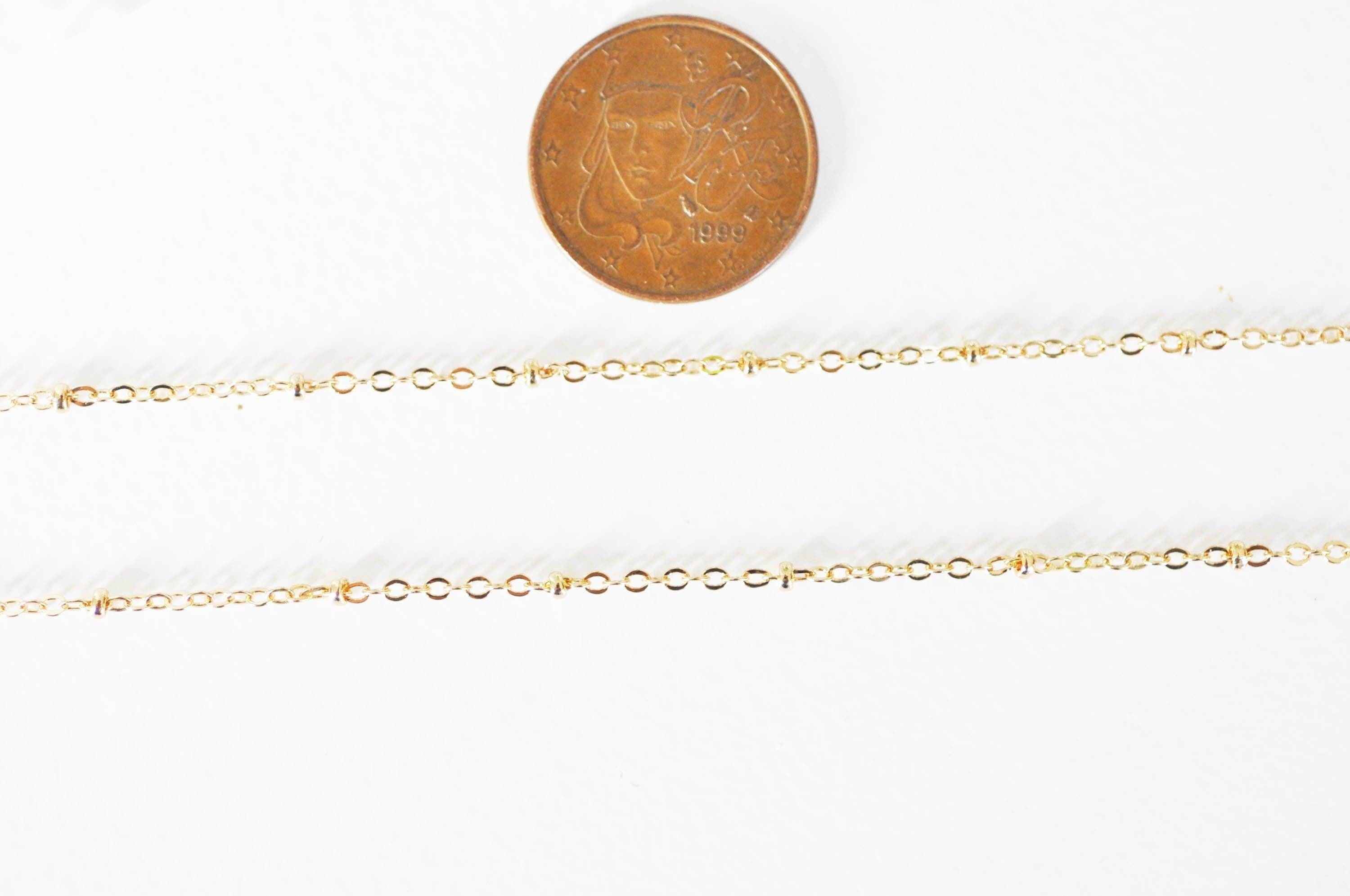 Cadena satélite fina de oro de 16 quilates, cadena bañada en oro de 1 micra, cadena para collares, creación de joyas, cadena completa, cadena de oro, 1,5 mm, 40 cm